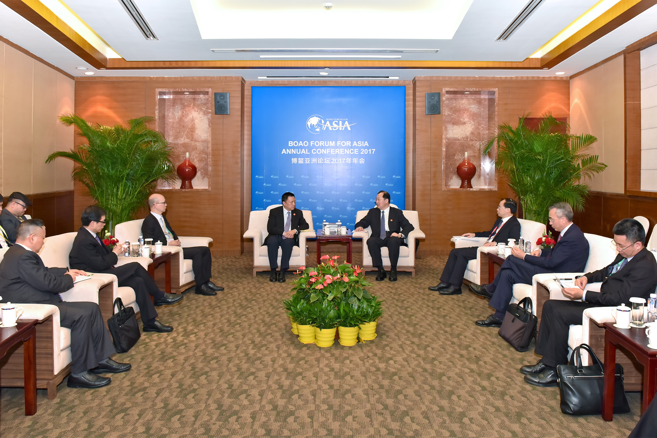 • 正在海南省參與博鰲亞洲論壇2017年年會活動的經濟財政司司長梁維特與廣州市委書記任學峰會面