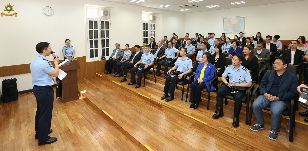 接著由交通廳的代表介紹近期交通形勢,包括警方打擊的士違規及白牌車活動、打擊車位佔用及檢控咪錶數等。稍後再由公共關係處警官進行防騙知識分享,主要介紹近期常見的電話詐騙案,分享騙徒常用的手法以及如何避免受騙知識,並介紹治安警察局即將舉辦的各項有關青少年的活動。簡報結束後,到訪嘉賓參觀交通廳新辦公大樓及設備,並與治安警察局警官於交通廳餐室內共同茶敍,進一步交流。