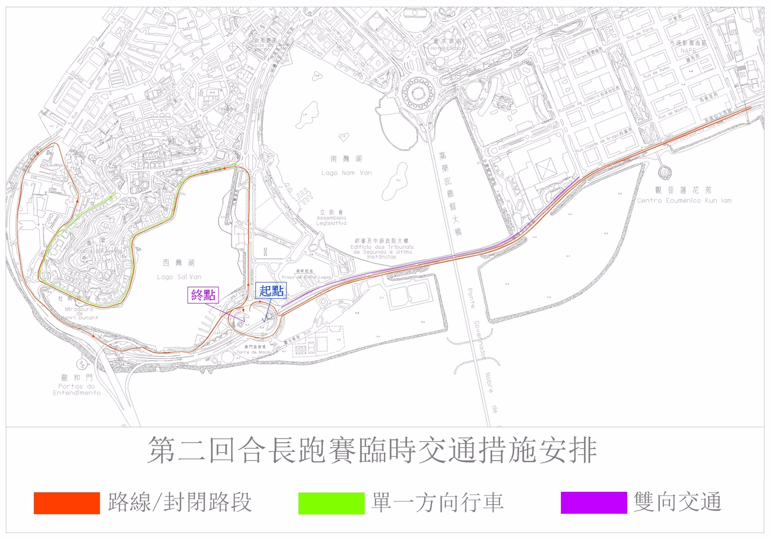 • 第二回合長跑聯賽臨時交通安排示意圖