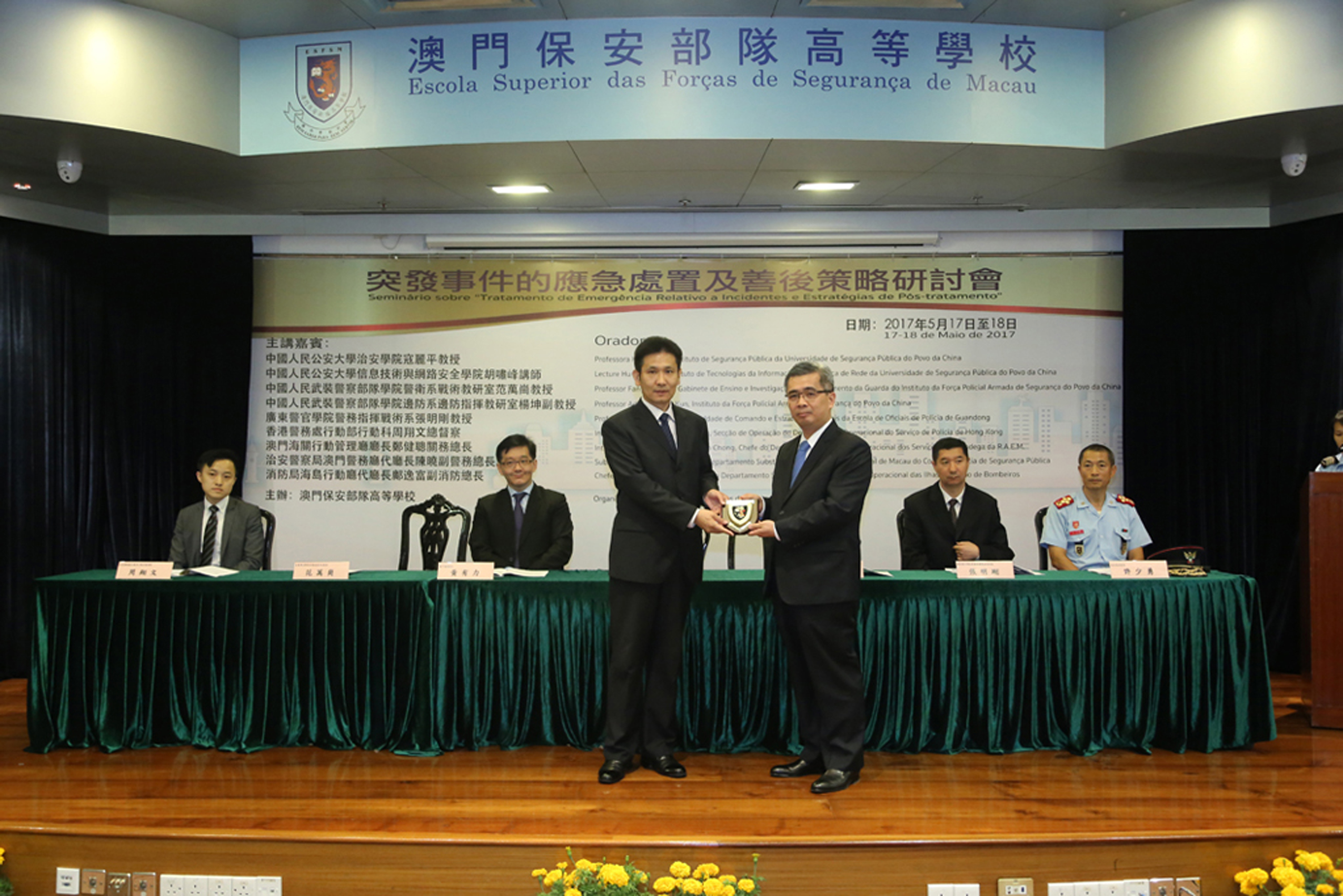 為使澳門保安部隊人員增加對突發事件的應急處置與善後策略方面的知識與經驗,於本年5月17日至18日,澳門保安部隊高等學校以「突發事件的應急處置及善後策略」為題舉辦研討會。研討會分別邀請了中國人民公安大學、中國人民武裝警察部隊學院、廣東警官學院及香港警務處派出專家學者,聯同澳門保安部隊及保安部門的代表擔任主講嘉賓。