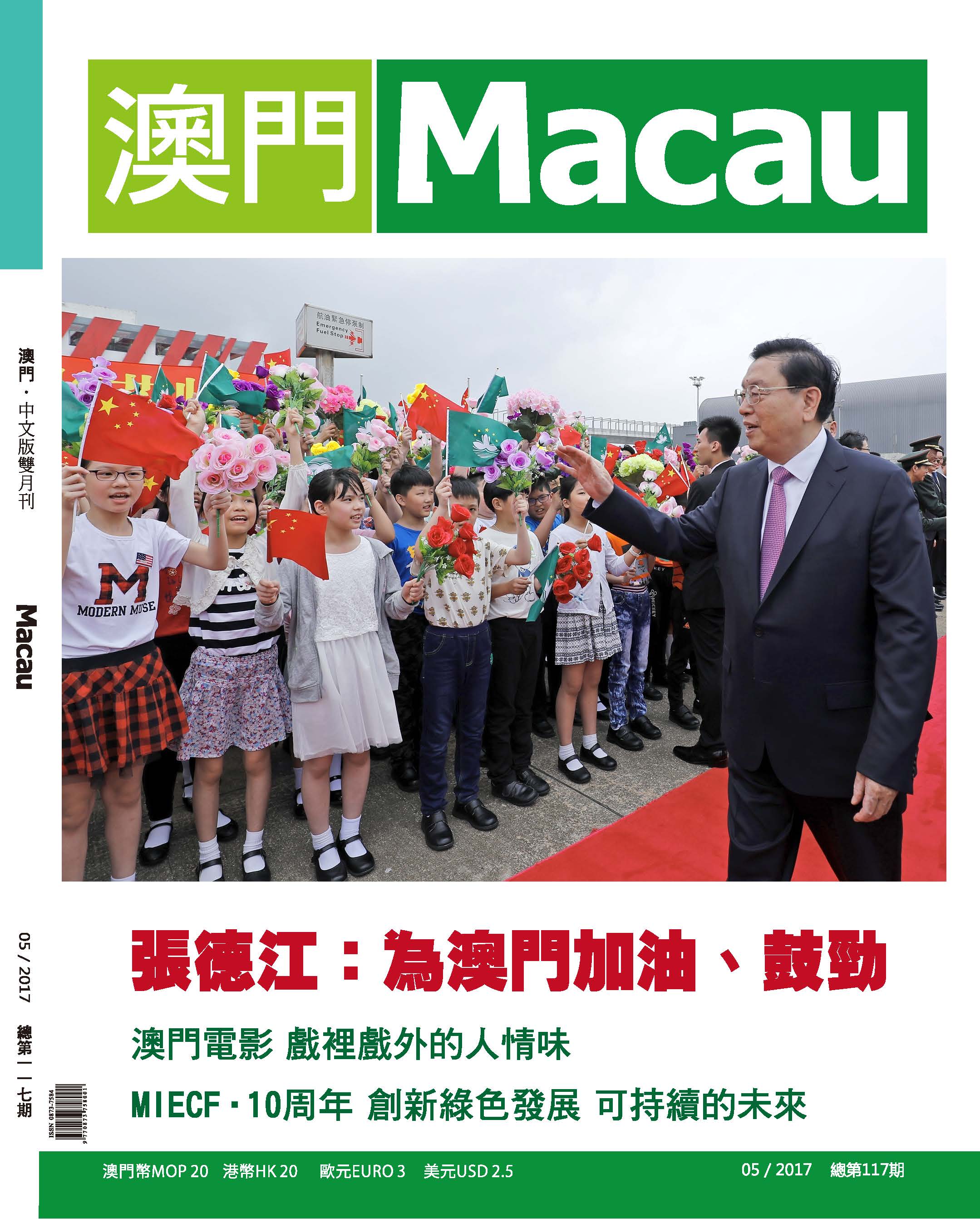 《澳門》雜誌(中文版)第117期現已出版。中共中央政治局常委、全國人大常委會委員長張德江於5月8日上午乘坐專機抵達澳門,進行一連三日的視察活動,他指出,澳門回歸以來,用事實證明了「一國兩制」在澳門的成功實踐。《張德江:為澳門加油、鼓勁》為讀者跟蹤報道委員長在澳門的視察活動及重要講話。
