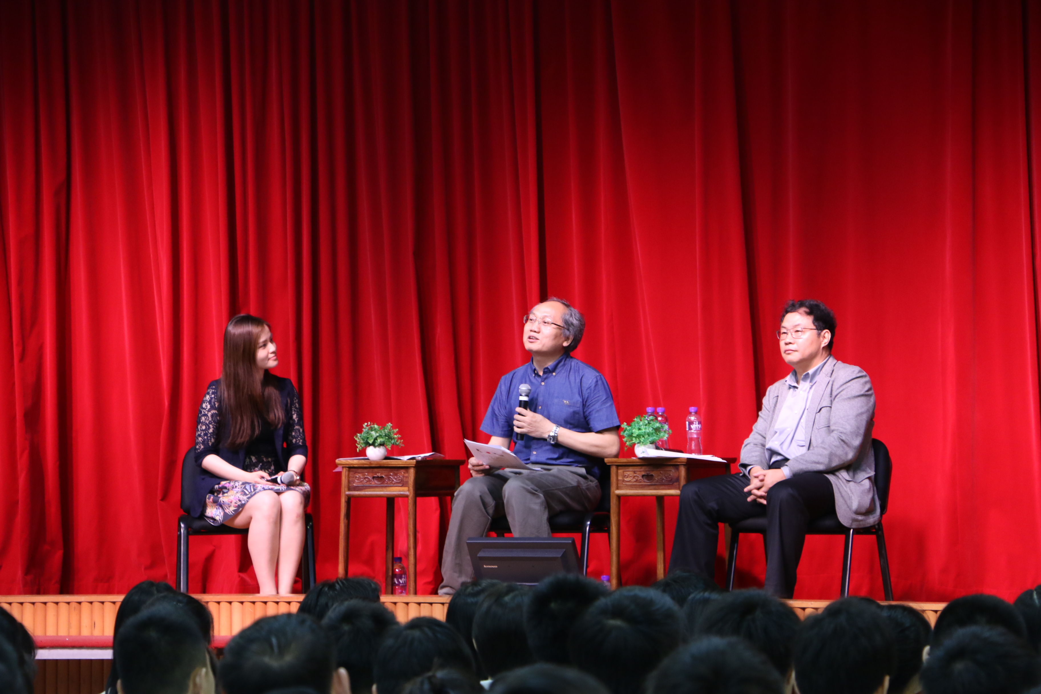 黃仕忠教授於2013年入選國家教育部長江學者特聘教授,主要研究方向爲中國古典文獻學、中國戲曲與俗文學等。座談會上,他與師生分享的主題是 “怎樣寫好一篇作文”,勉勵學生在求學時期應多看書,便能悟出道理。徐傑教授於2016年獲選為“語言學及應用語言學”專業範疇唯一一位“長江學者講座教授”,他提出語言是人類最重要的能力,提倡學生要培養“一超多強”,即一種超強語言搭配多種很強語言,方能成為傑出人才。