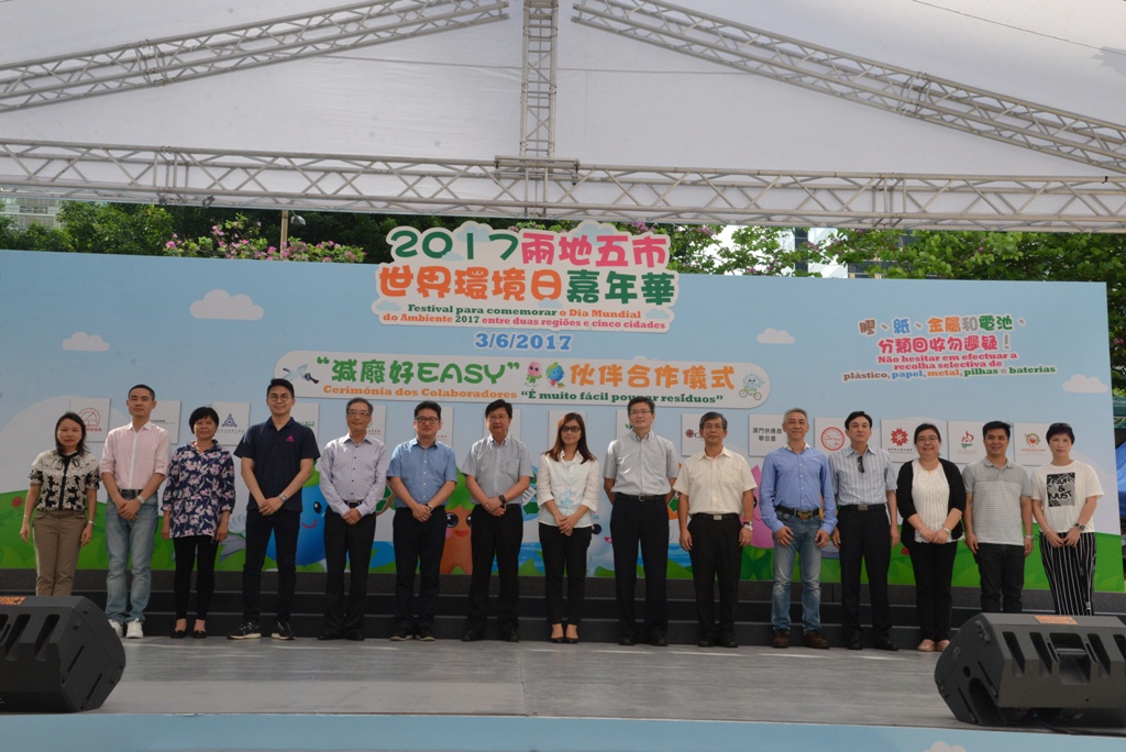 為響應6月5日“世界環境日”這國際性的環境保護節日,環境保護局於今日下午三時半假友誼廣場舉辦“2017兩地五市世界環境日嘉年華”,以“膠、紙、金屬和電池,分類回收勿遲疑”為主題,帶出“源頭減廢,分類回收”的環保訊息。活動由澳門環境保護局與鄰近兩地五市,包括廣東、香港、廣州、中山、珠海、深圳、東莞的環保部門合辦,本澳多個相關部門、社團、機構等作為協辦和支持單位。