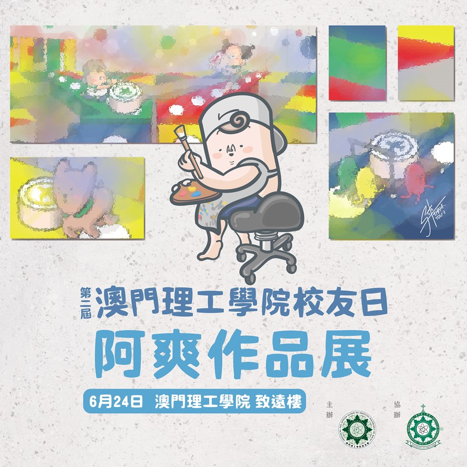 阿爽作品展於6月22日至29日於澳門理工學院懷遠樓展覽廊展出,是次作品展為「第二屆澳門理工學院校友日」系列活動之一,理工校友會邀請阿爽為校友日作主題及插畫設計。本地年輕插畫家鄭智星分別以飛行棋、理工課程及不同節日為主題,創作一系列活潑生動的插畫。