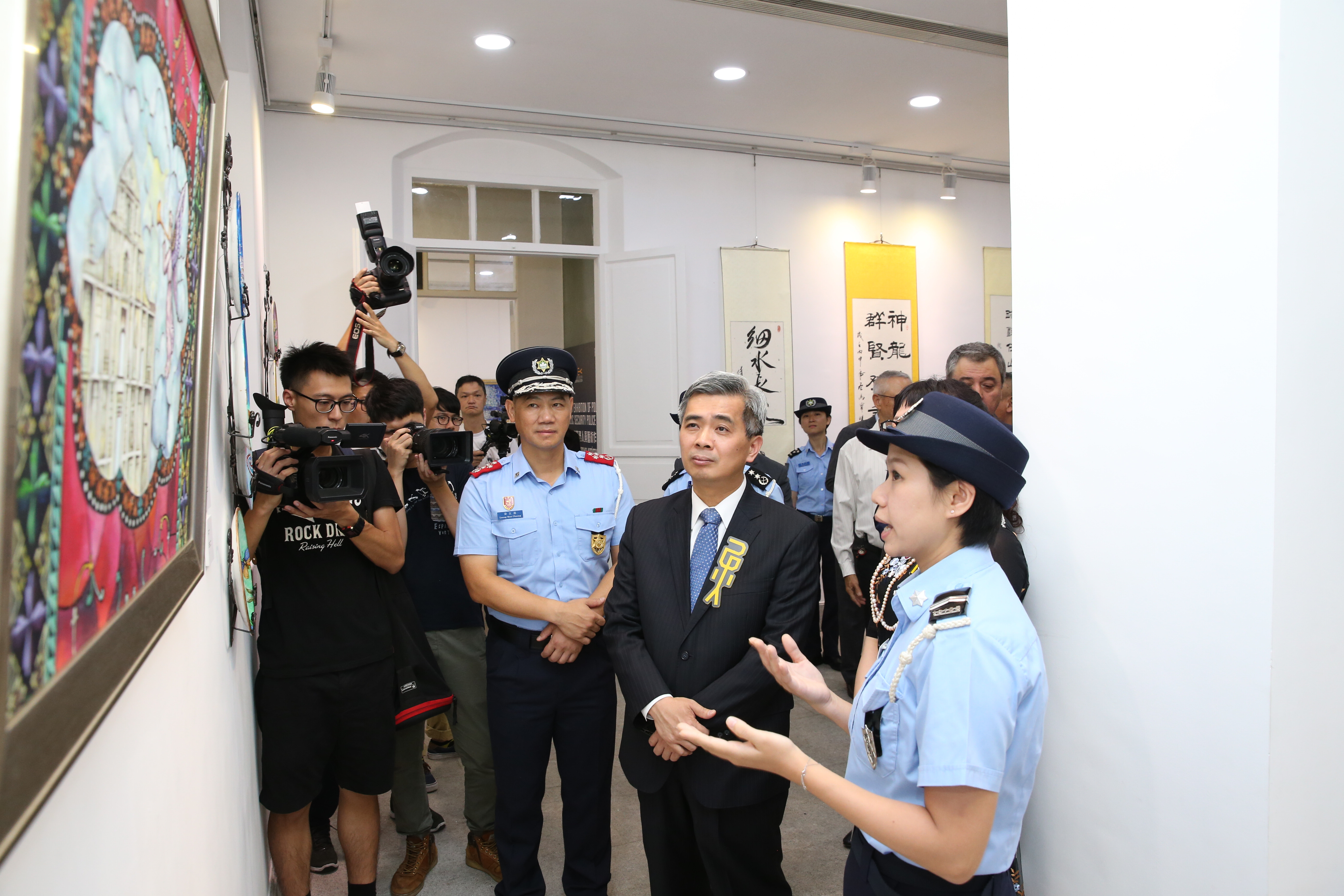 治安警察局梁文昌局長致辭時表示,治安警察局一向重視警隊文化建設,著力創設環境及投放資源支持人員參與各類健康文化活動,提升警隊文化素質及正面形象。美術書畫班於2008年成立至今,導師和學員創作出眾多高水準的藝術作品,並舉辦和參與藝術展覽活動合共24次,以及與本澳藝術團體建立深厚友誼及構建良好交流平台。治安警察局藉著藝術展覽活動,與市民大眾共享創作成果、互動交流,促進警民關係,同心協力共建美好治安環境。