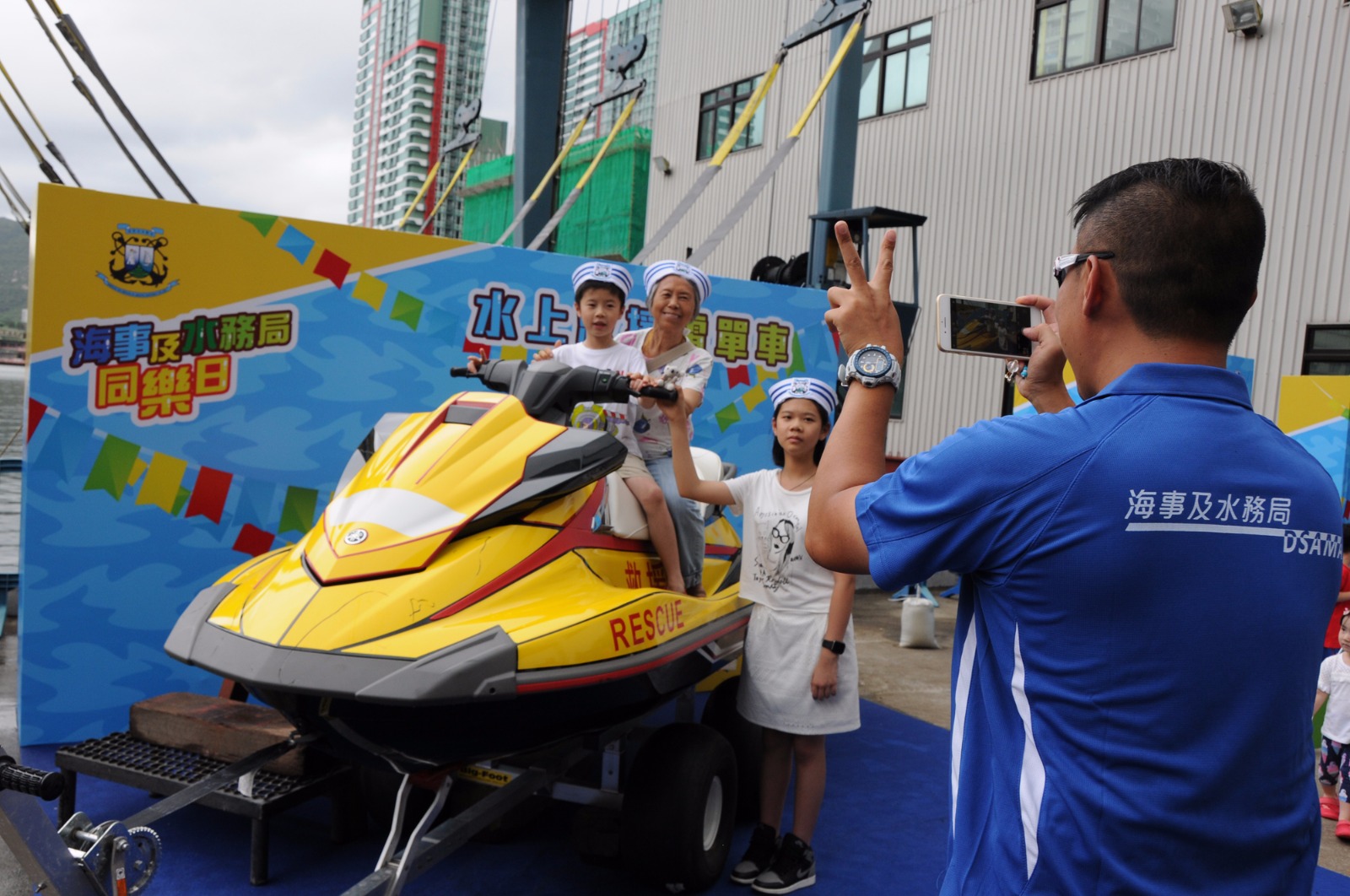 同樂日現場設有多個以海事安全和節約用水為主題的攤位遊戲,還有真人版遊戲棋,而深受小朋友歡迎的節水英雄“威水超人”和“水汪汪姐姐”亦親臨現場帶來精彩演出。另外,活動提供難得的機會讓市民模擬體驗水手的日常工作以及學習海事技能,例如模擬射水炮、拋繩繫纜、編織海事繩結等,一嘗水手工作的樂趣。政府船塢的造船部、機械部以及抱船車等特有設施亦有開放,來到參觀的市民登上海事工作船隻,以及坐上水上救援電單車拍照留念。開放日活動宣傳教育之餘不乏玩樂,結伴同遊的親朋都玩得興奮投入,增進了海事知識,亦更了解海事局的職能和人員的日常工作。