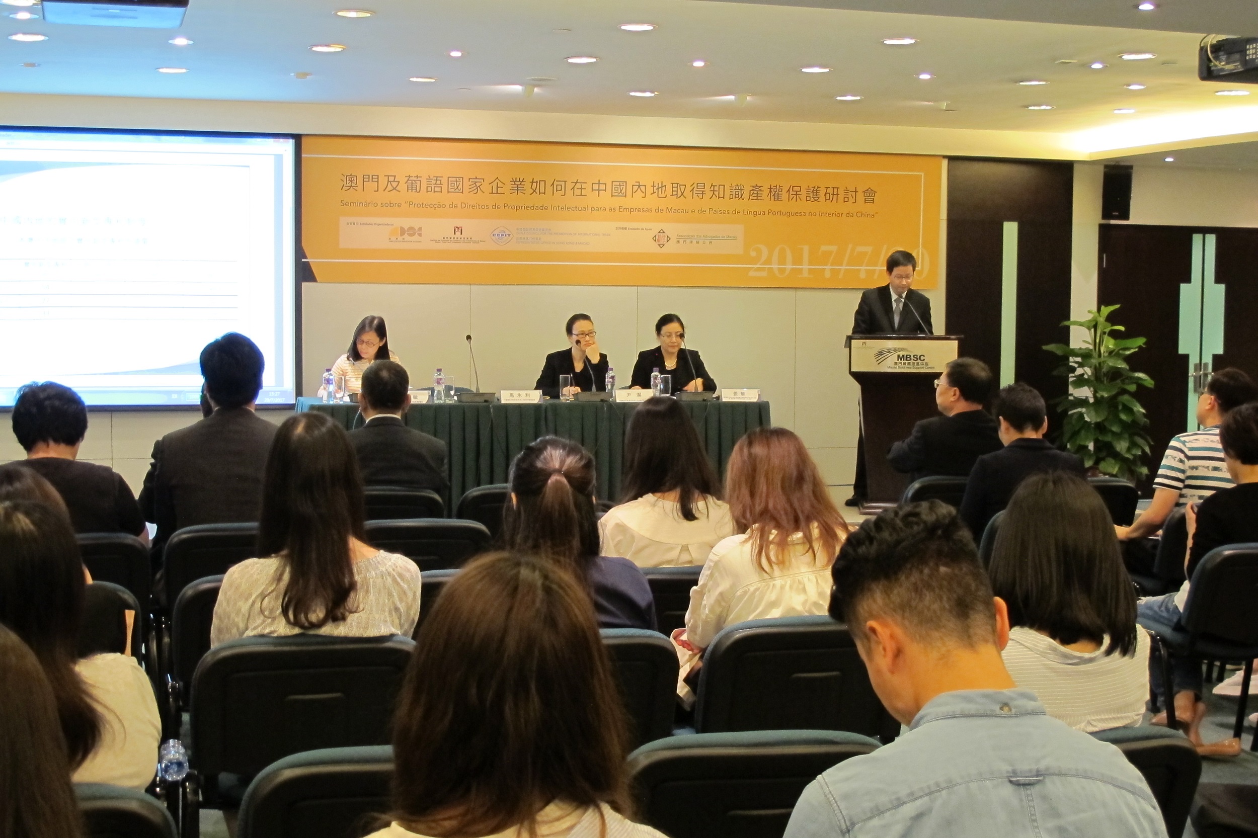 為履行«中國國際貿易促進委員會與澳門貿易投資促進局合作協議»,共同協助加快澳門建設“中國與葡語國家商貿合作服務平台”,同時加強培訓業務合作,今(20)日,澳門貿易投資促進局、經濟局及中國國際貿易促進委員會駐香港澳門代表處,合辦“澳門及葡語國家企業如何在中國內地取得知識產權保護研討會”,活動在澳門商務促進中心多功能會議廳舉行,獲澳門律師公會支持,吸引超過60位企業家及代表出席。