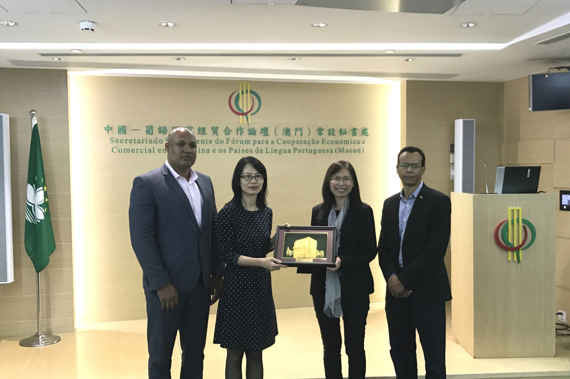 理工國際生一行獲陳敬紅副秘書長、佛得角駐常設秘書處代表馬里奧‧文森特先生等的親切接待。陳敬紅副秘書長向國際生介紹中國-葡語國家經貿合作論壇的重要性,以及論壇作為中國與葡語國家之間橋樑的作用。未來秘書處將與葡語國家攜手合作,秉持“共商合作、共建平台、共用發展”理念,積極參與中方“一帶一路”戰略,提升澳門平台作用。