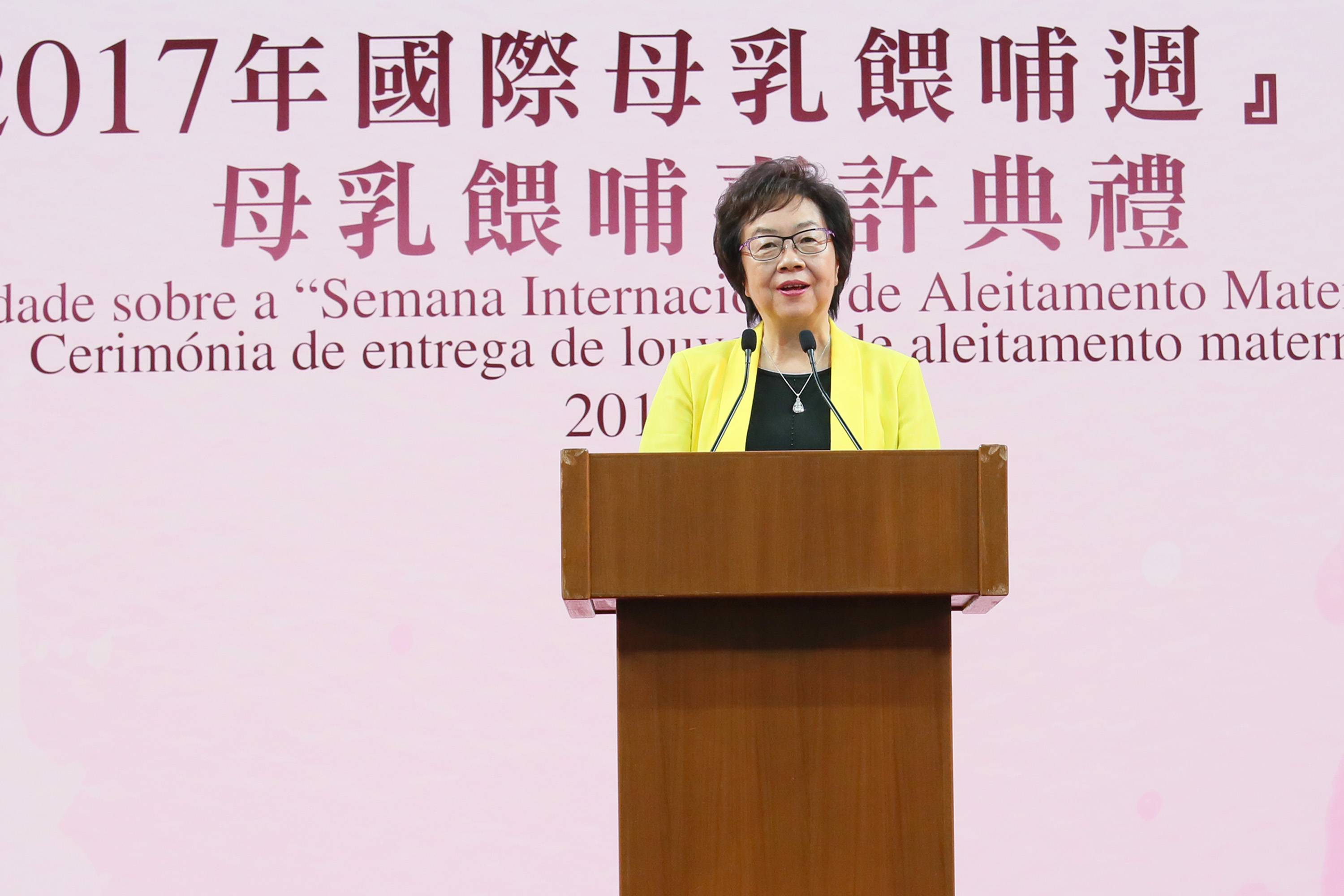 譚俊榮司長在致辭時特別感謝參與活動的公、私營機構,及持續以母乳餵哺嬰兒的媽媽。他表示,當局已是第二年舉辦“母乳餵哺嘉許典禮 ”,活動得到社服機構的支持,更有600個以上的家庭報名參與活動,意義重大而深遠。他指出,為響應世界衛生組織(WHO)的呼籲,支援婦女們外出時能夠隨時哺乳,自2016年初開始,社會文化司率先鼓勵轄下部門設立母乳餵哺室,至今本澳公、私機構已設立超過100間母乳餵哺室。衛生中心由媽媽懷孕至產後均提供一系列的推廣及支援,透過海報、小冊子及電視媒體向全澳市民進行宣傳推廣。哺乳媽媽亦可在“衛生局資訊站-母乳資料”中隨時查閱相關資訊。此外,仁伯爵綜合醫院亦特別加強了產後早期“母嬰肌膚接觸”的安排,鼓勵及推動哺乳的開始。當局將繼續鼓勵各機構成為“母乳餵哺友善工作間”,希望透過機構政策支援及員工的協助,讓所有在職婦女實現持續母乳哺育嬰兒的願望。而經過近年大力度的推廣,根據衛生局的資料顯示,2016年出生嬰兒曾以母乳餵哺的比率超過九成二,較2015年提升4%;而2016年出生嬰兒以純母乳餵哺至4個月或以上的比率超過兩成,以純母乳餵哺至6個月或以上的,人數亦有上升趨勢,顯示母乳推廣工作成績理想。