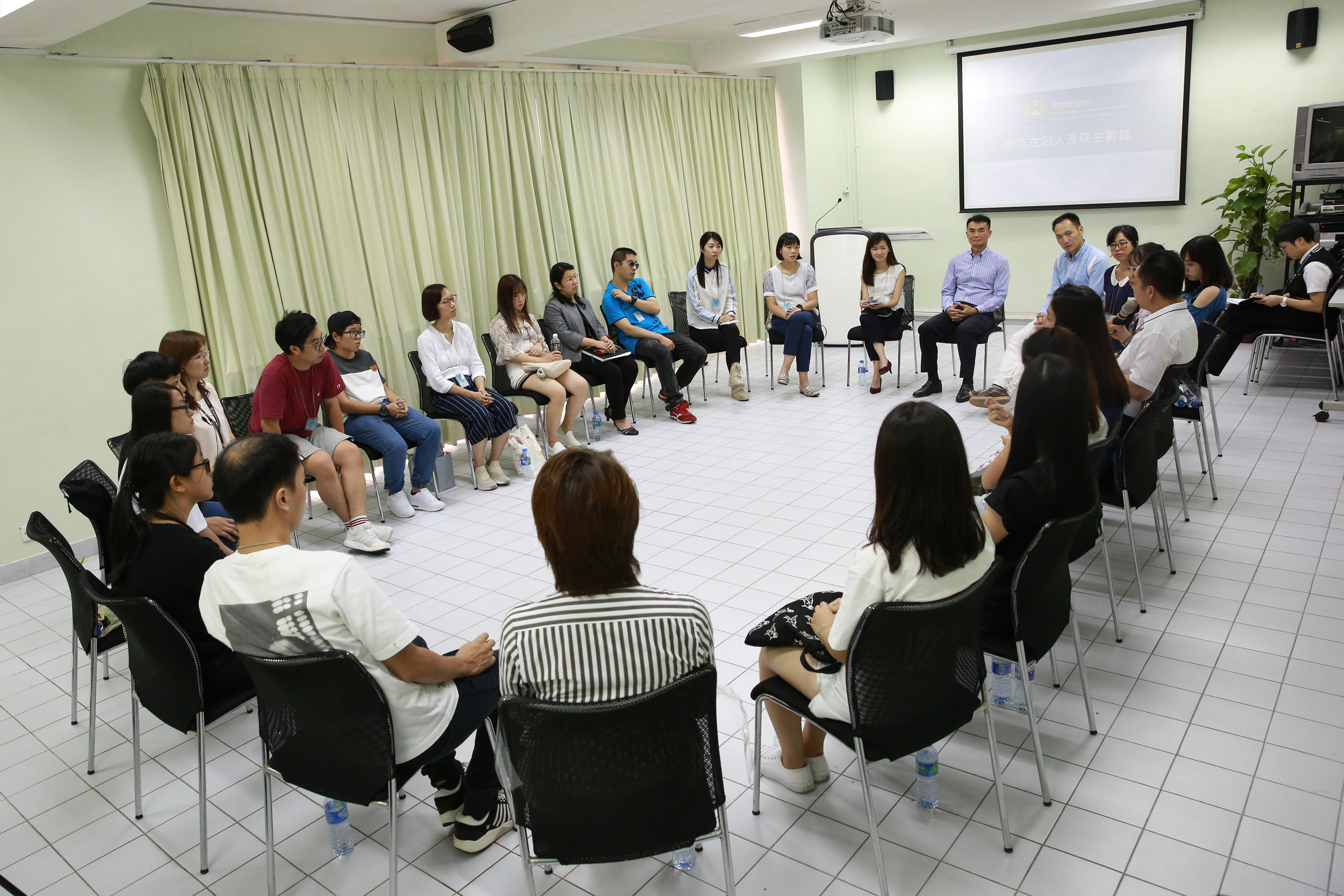 為了提高青年對懲教工作的瞭解,推動 青年認識和關心社會各個階層,懲教管理局於8月8日舉辦座談參觀活動,邀請澳門中華新青年協會的青年成員與在囚青年互動對談、參觀路環監獄設施,並深入探討警惕青少年犯罪以及協助在囚人和院生重建新生等議題,藉此推廣預防青少年犯罪的訊息,並冀借助青年的力量,讓社會更廣泛地關注到在囚人和院生重返社會需要大眾接納與社區支援。