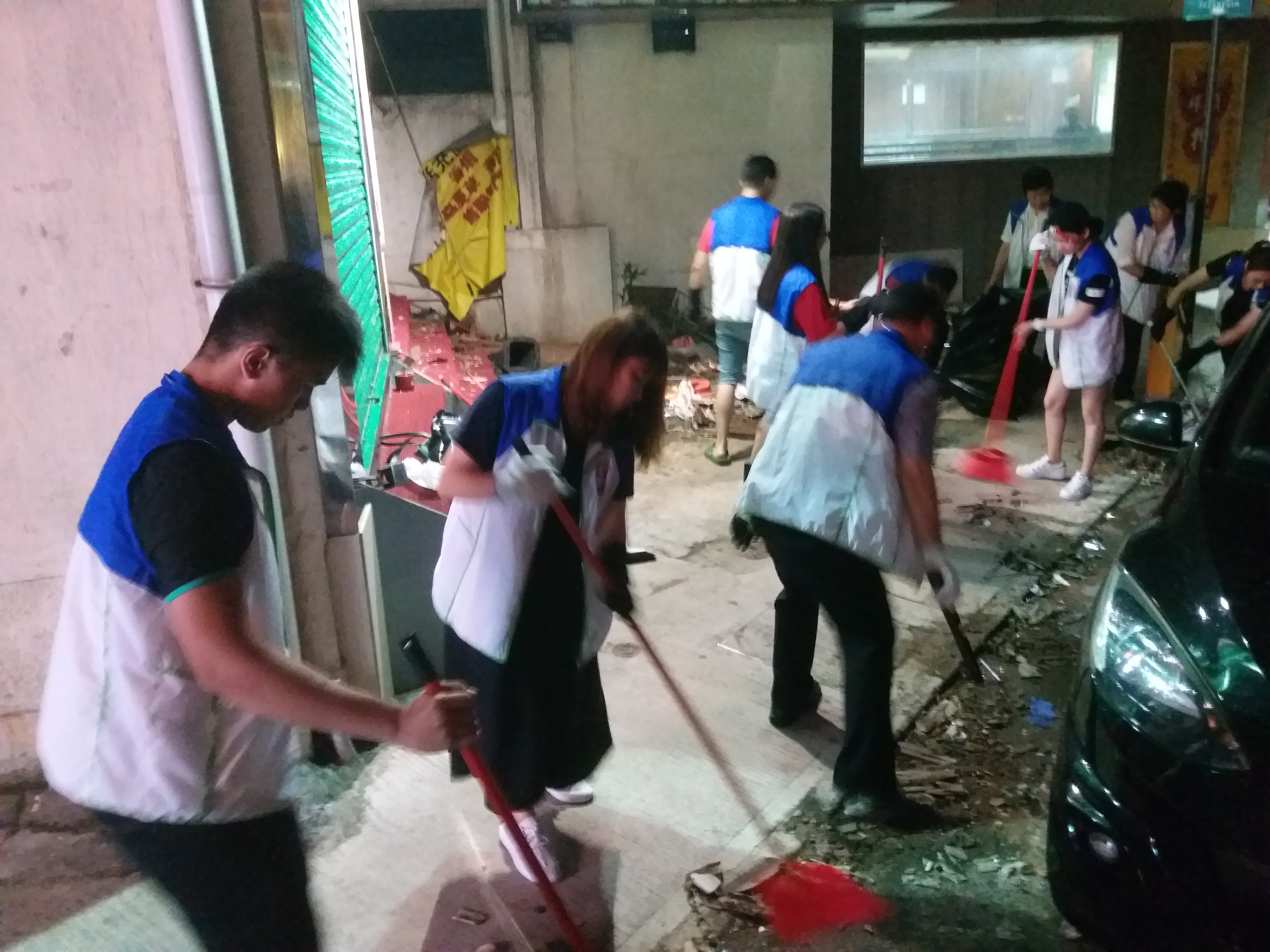 為團結社會各界一起面對8•23颱風對澳門造成的損壞,教育暨青年局已即時於8月24日組織局內的同事與多個青年社團義工一起行動,深入社區進行清潔和各類清理工作,並計劃於25日至27日期間,繼續前往南灣、荷蘭園、高士德、筷子基、台山、黑沙環及關閘一帶,清理颱風後遺下的塌樹、玻璃碎片及雜物。