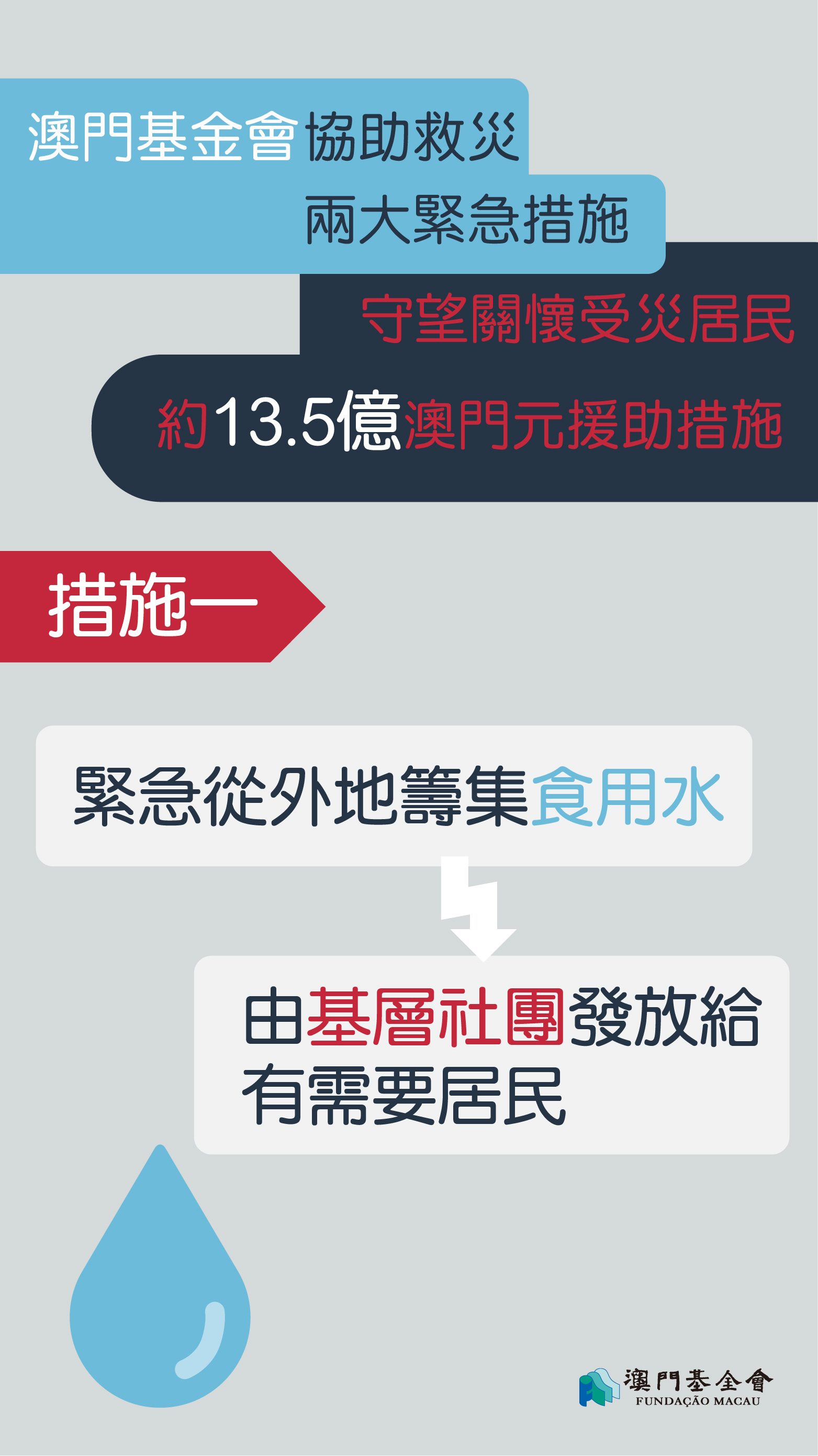 澳門基金會推出協助救災的緊急措施,當中包括“遇難者慰問金”、“家居修復援助金”、 “醫療慰問金” 及“水電補貼”,由於有大量市民親身前來查詢登記,澳基會強調,“水電補貼”方面,將直接與專營公司聯繫,市民無需登記或申請。