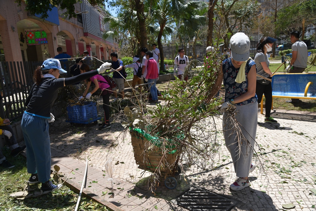 民政總署協調三十多個公共部門及機構組織公務員義工,分別到本澳各區清理垃圾,連日來有超過1,800名義工參與,行政法務司司長陳海帆及多個公共部門領導於今日(8月26日)繼續一同參與行動。陳海帆感謝每一位無私付出的工作人員及市民,表示政府會與市民一起共同努力,期望社會各界配合政府的善後工作,共渡時艱,盡快讓社區復原。