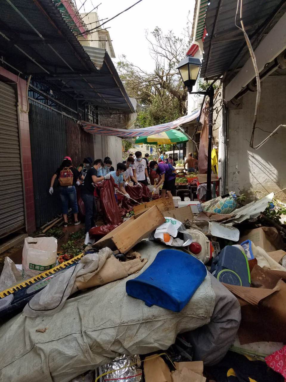 民署繼續聯同政府各部門、駐澳部隊、清潔專營公司及民間機構團體等,全力跟進風後清理街道的善後工作。三區社諮會亦動員轄下社團到本澳多個地點協助清理,包括新橋區、馬黑祐區、皇朝區、氹仔區及路環。另外,約300名建築工人帶同相關清理設備協助清理北區的垃圾。