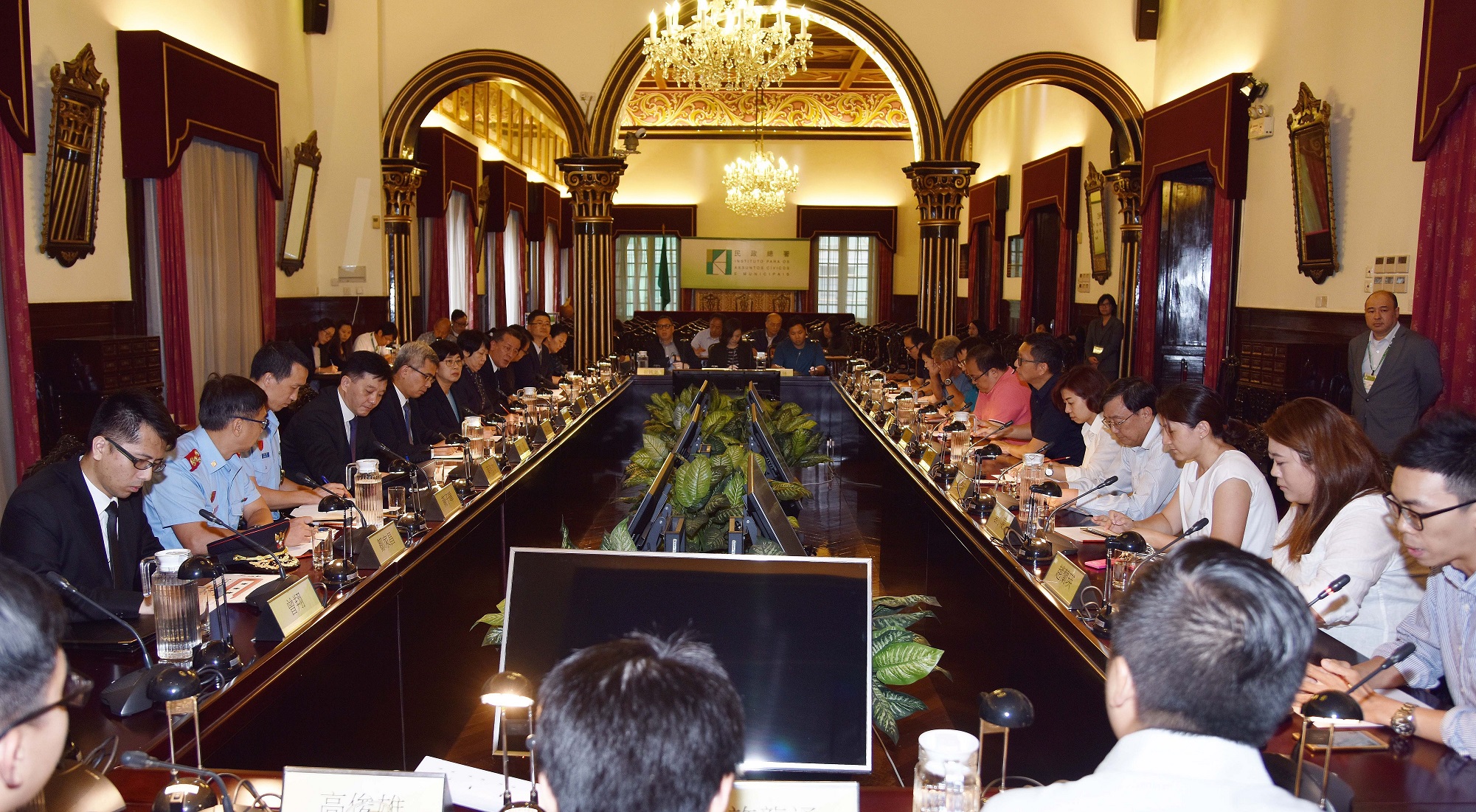 八月二十八日,行政法務司司長陳海帆、保安司司長黃少澤帶領相關範疇的領導與北區、中區及離島區社區服務諮詢委員會18名代表舉行會議。陳海帆司長首先代表特區政府對三區社諮委成員全力支持政府災後救援工作表示衷心感謝,充分發揮了社區強大的支援力。同時,期望透過此次機會,認真聽取各委員對政府整體的應對機制和救援工作提出意見和建議。會上,18位社諮委代表踴躍就氣象預報、民防中心運作、救災統籌協調、訊息發放、基礎建設等方面提出理性、客觀且具前瞻性的意見。