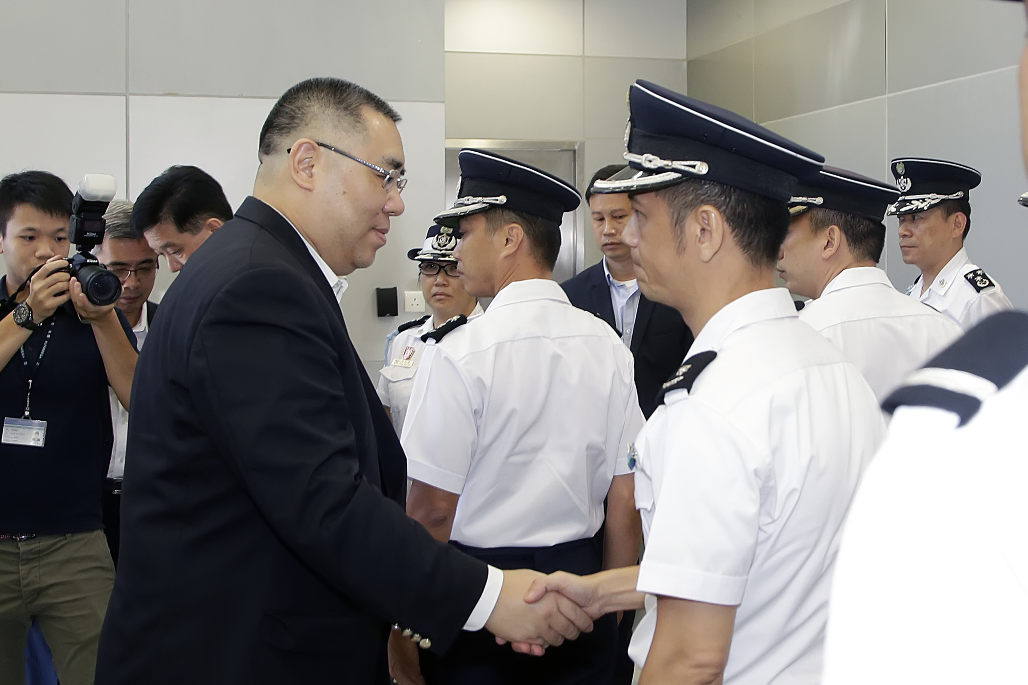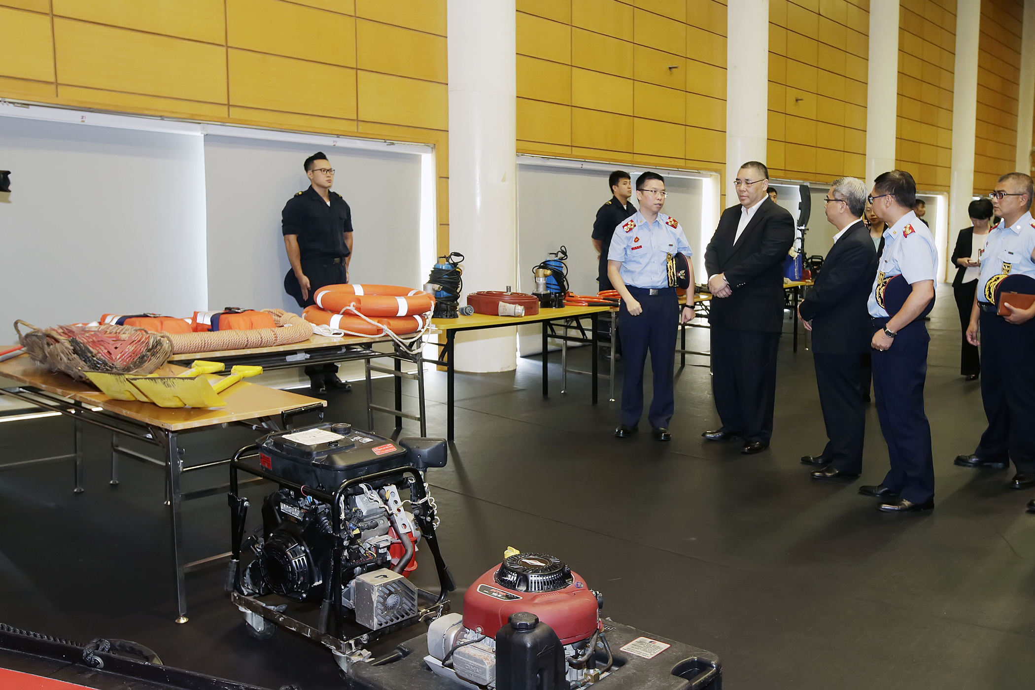 另外,行政長官分別視察了治安警察局、消防局及海關的裝備,再次向黃少澤司長和保安部隊領導表示要盡快完善,增加配備。