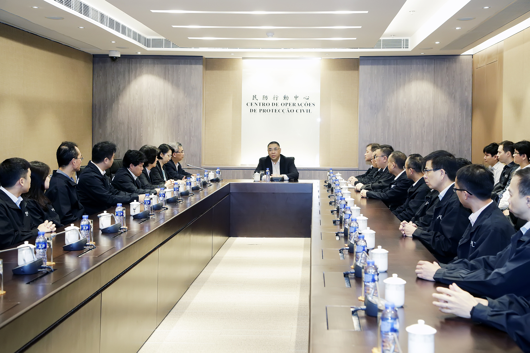 行政長官指出,前線人員以救災第一的信念,在工作量超負荷的情況下努力不怠地幫助澳門居民脫困,幫助社會回復秩序。為此,他再次代表特區政府及其個人,感謝全體保安部隊人員,尤其隊員家屬給予的支持、付出和諒解。