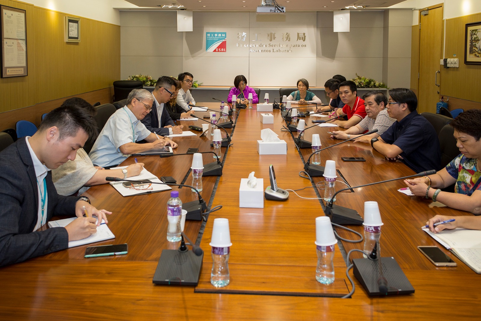 會面中,各方就博彩業僱員於颱風期間的工作安全和安排等問題交流意見,工會團體代表提出的意見包括涉及:要求博彩企業於八號風球或惡劣天氣期間暫停部分賭枱營運、八號風球除下後給予足夠時間予僱員上班、對於提供超時工作的僱員給予足夠休息時間和報酬補償,工會團體又建議,日後勞資政各方必須加強溝通,以避免發生因颱風和重大事故等引發的勞資問題。