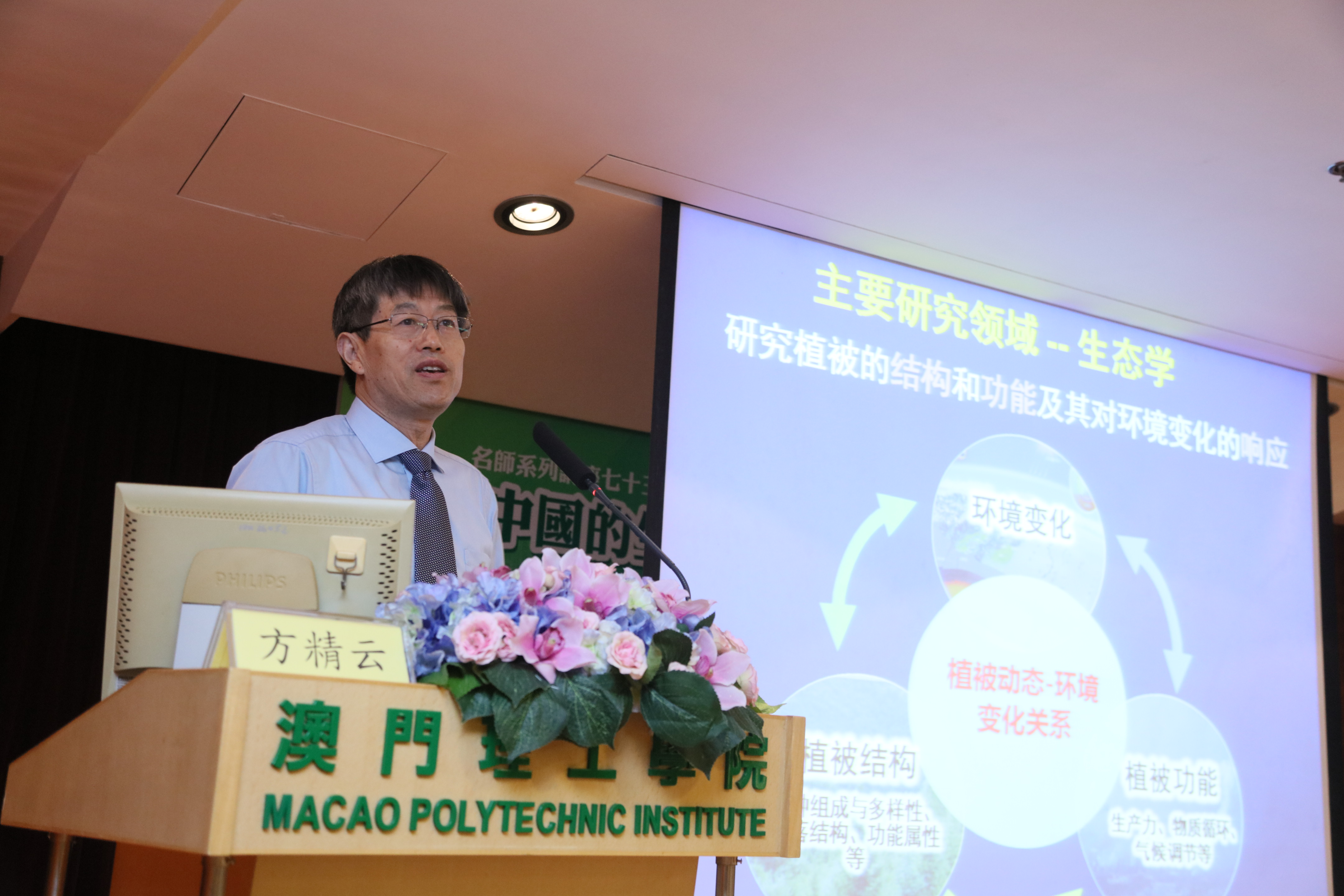 澳門理工學院於九月二十日下午在匯智樓一樓2號演講廳舉辦了“名師系列講座七十三講 - 中國的生態和環境問題”講座,邀請到北京大學城市與環境學院教授方精雲主講。理工署理院長嚴肇基向主講嘉賓致送了紀念品,中西文化研究所所長林發欽主持,出席的包括有師生員工,以及報名參加的社會人士。