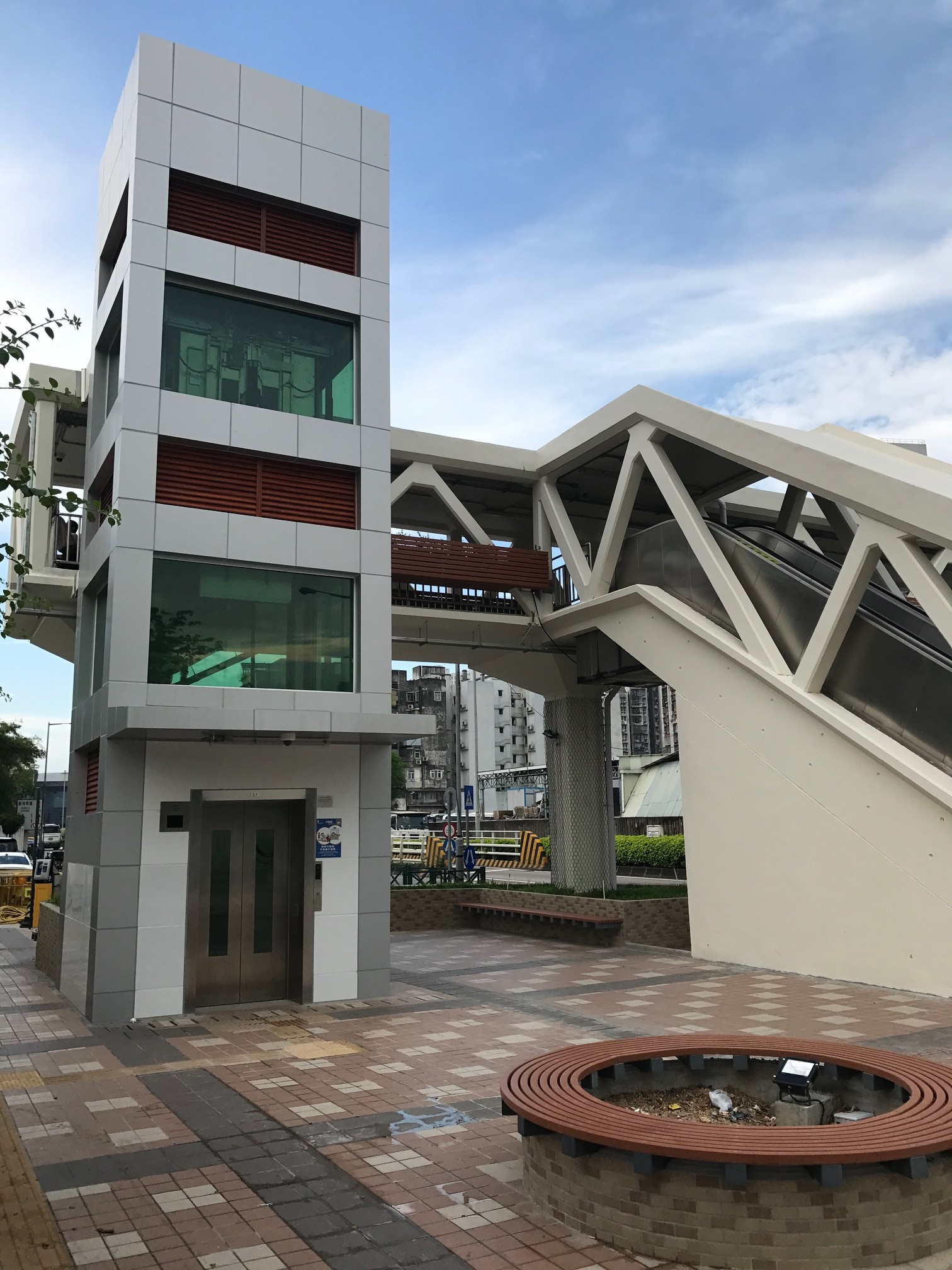 何賢紳士大馬路行人天橋是市民進出紀念孫中山市政公園的主要過路設施,由於過去有關天橋的無障礙坡道佔地較大及長,對使用輪椅人士體能要求較高。為進一步改善無障礙環境及合理利用空間,民署拆除了天橋兩條無障礙坡道,於天橋落腳點兩側各設置一部升降機,以方便有需要人士;同時,翻新行人天橋外觀,增加綠化設施並美化行人天橋的立面造型。