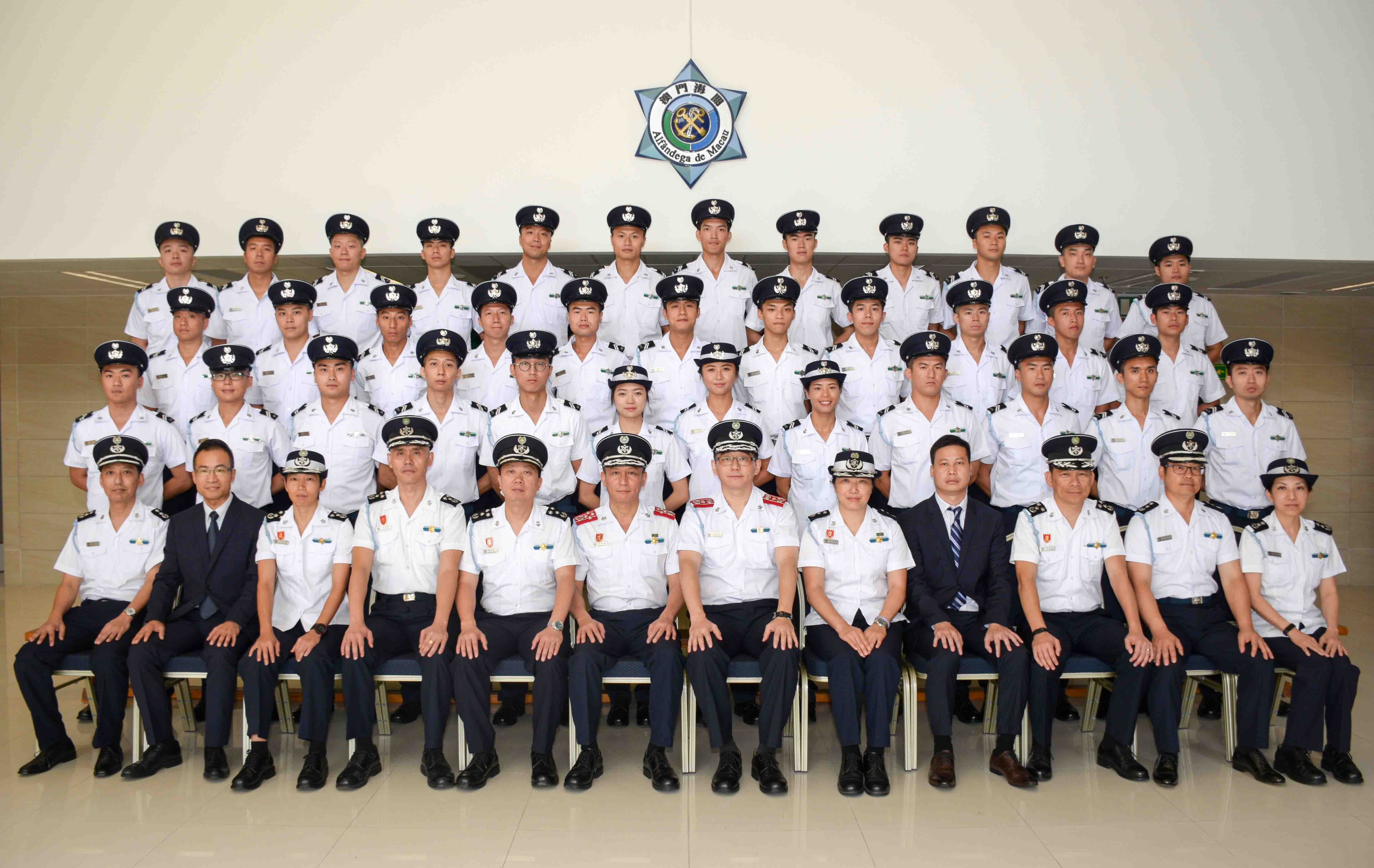 澳門海關於今日(28日)上午在青洲海上監察廳大樓舉行關員入職儀式,是屆完成培訓課程並畢業的學員共有35人,包括32男3女,當中26人持有學士學位或更高學歷。