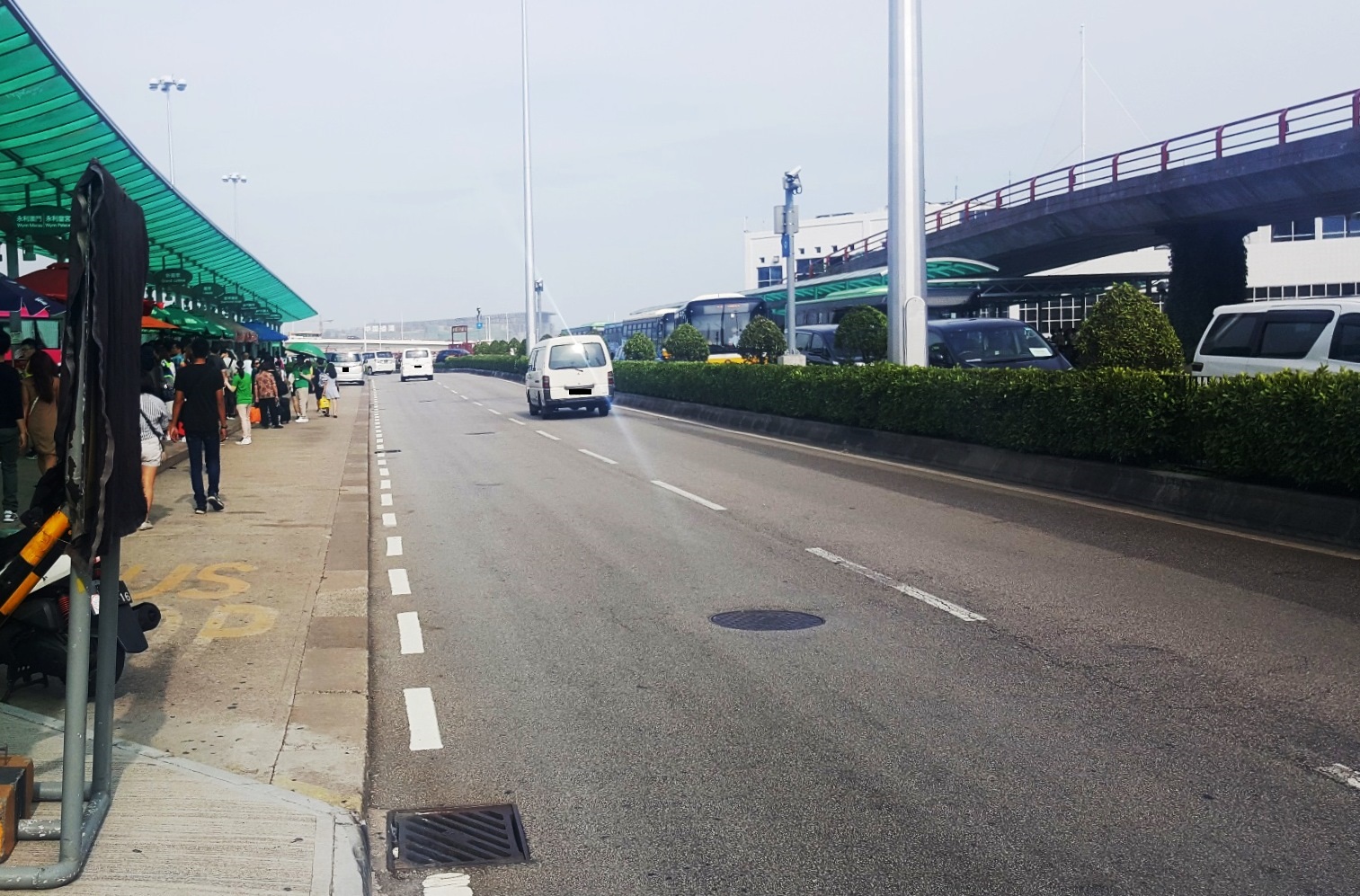 因進行澳門格蘭披治大賽車臨時車房建造工程,10月8日(周日)上午9時至12月2日(周六)海港前地封閉交通及禁止車輛停泊,海港前地近行車天橋的路段分別設置兩個穿梭巴士停泊區供酒店穿梭巴士上落客使用,一個位於往羅理基博士大馬路方向、距離“外港碼頭”巴士站約120米之處,另一個則位於“外港碼頭”巴士站對面的巴士落客區旁邊的位置。