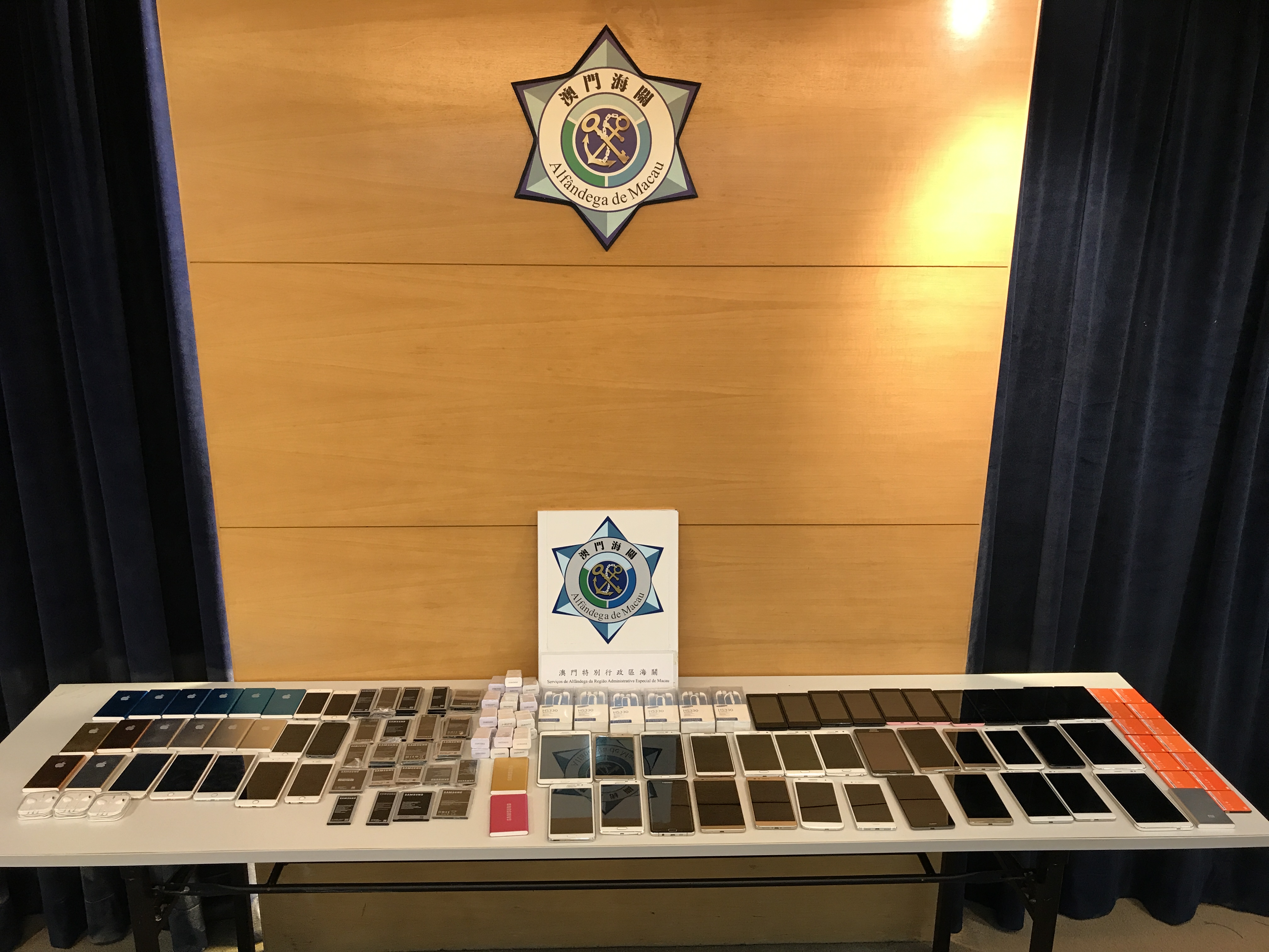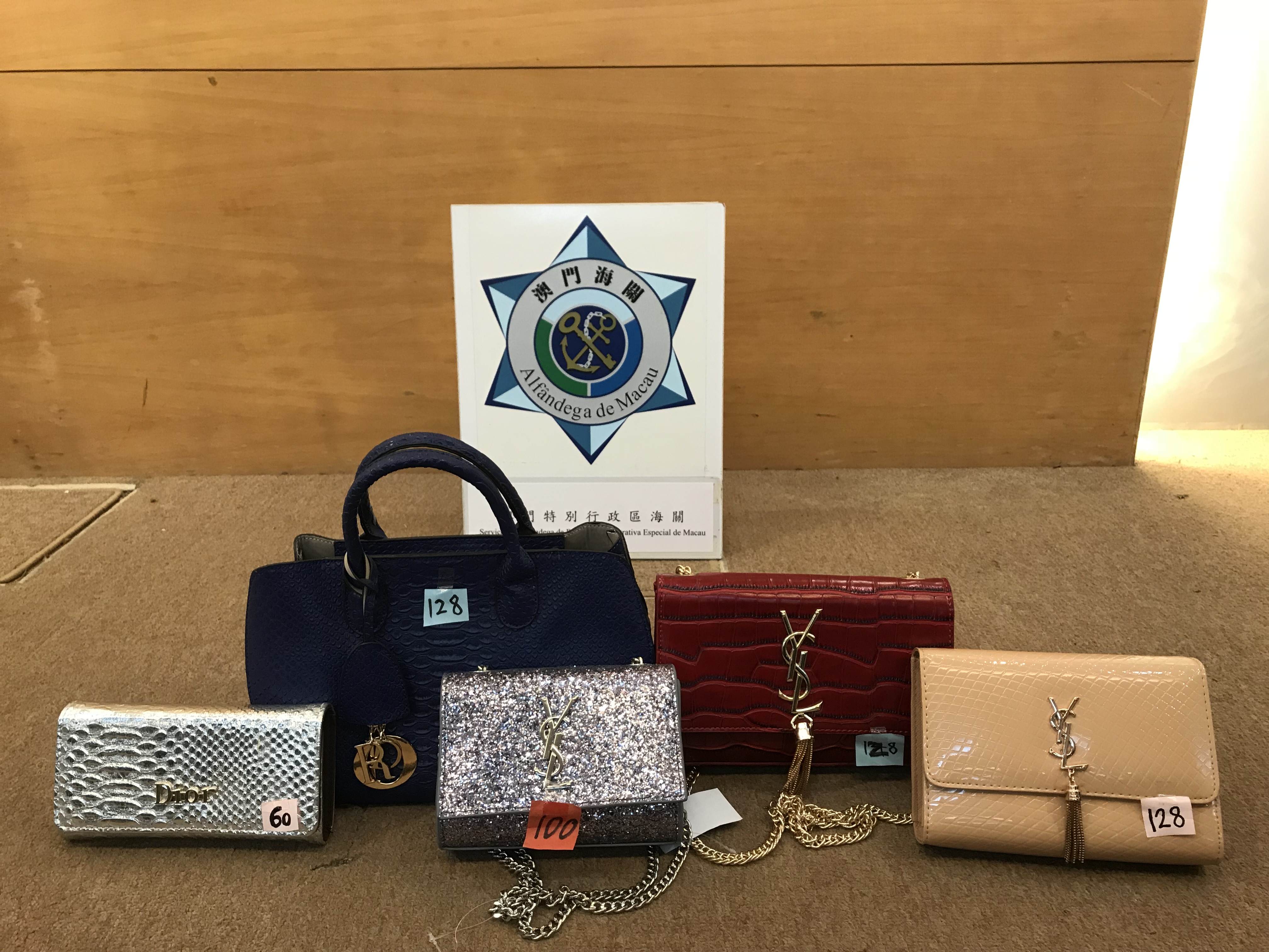 十‧一黃金週期間,大量遊客進入澳門旅遊觀光,為保障消費者權益、維護澳門旅遊城市的形象,海關聯同消費者委員會、經濟局及衛生局等多個部門在各區旅遊景點及酒店進行巡查及派發宣傳單張。巡查期間海關先後偵破兩宗涉嫌售賣冒牌產品,查獲5個假冒「DIOR」及「YSL」品牌手袋及銀包,145件假冒「IPHONE」、「SAMSUNG」、「HUAWEI」、「MI」手提電話及電話配件。兩宗案件分別有一名黃姓店舖負責人及一名張姓擺地攤者(兩人均為本地居民),因涉嫌觸犯第97/99/M號法令《工業產權法律制度》第二百九十二條(將產品或物品出售、流通或隱藏)所指之犯罪而被移送司法機關處理。
