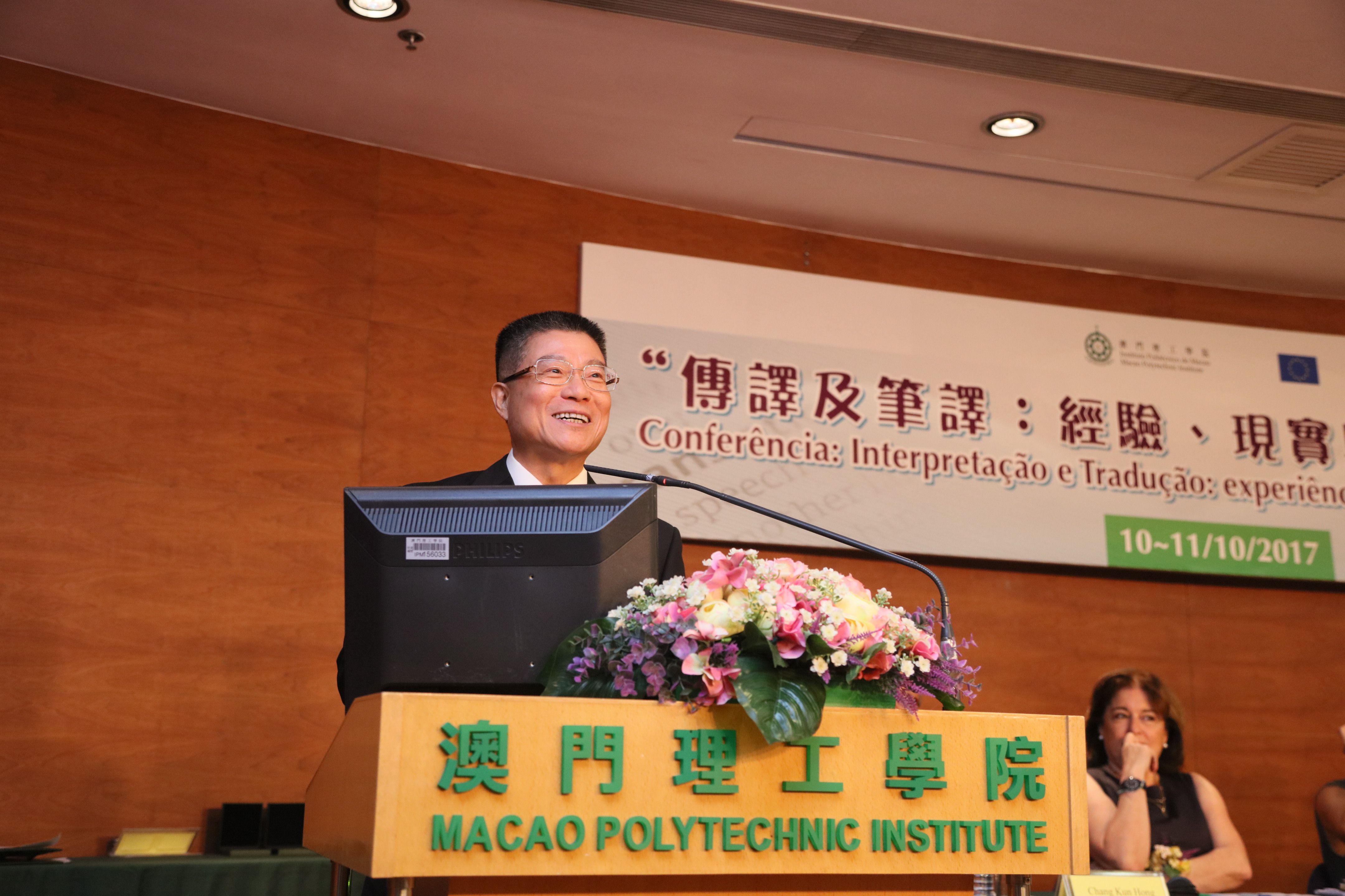 李向玉致辭時表示,研討會在澳門舉辦,兌現了理工與歐盟鞏固並深化合作的承諾,一方面既回顧﹑總結過去十年來雙方的友好密切合作,展望未來;另方面與澳門眾多口筆譯從業者分享業界最新發展動向,回饋澳門社會。從二OO六年起理工派出幾位骨幹教師在歐盟口譯總司接受培訓,成功把歐盟口譯總司的口譯培訓模式引入課堂。這種“緣份”見證了理工口筆譯課程的不懈努力與進步,也見證了歐盟對理工學院在培養中葡人才方面的大力支持。二O一O年理工開始定期請歐盟口譯專家來澳,至今成功舉辦了七屆中葡口譯培訓班。至今為止,理工與歐盟口譯總司合辦的課程培訓人員近七十名,除澳門本地師資外,還有來自内地十幾所教授葡萄牙語專業的大學教員,包括北大、北外、上外、北語等院校的教師,以及來自外交部、商務部、中聯部等國家部委的口譯員;二O一三年,理工按照歐盟標準設立的同聲傳譯教室落成,為口譯學習和培訓進一步創造了良好的學習環境。李向玉藉此感謝歐盟口譯總司和感謝培訓專員來澳門主持培訓,把口譯技巧帶到澳門,也透過學員播撒在中國的各個角落。去年藉著中國內地大數據發展的契機,理工與中譯語通科技(北京)有限公司和廣東外語外貿大學合作共同建立了中、葡、英機器翻譯實驗室,協力進行機器翻譯研發,尤其是中葡-葡中技術的研發,致力於未來以人工智能、大數據、雲計算作為輔助工具的口譯與翻譯,希望今後中葡英機器翻譯實驗室能繼續汲取歐盟成熟的機翻經驗,為語言教學、研究和培訓做出更大貢獻,並期待與歐盟在口譯和翻譯教學和科研方面的合作不斷得以深化。李向玉強調,理工學院將一如既往地辦好學位及培訓課程,致力發揮葡語教學優勢,配合国家的“一带一路”战略以及特區政府的施政理念,發揮其得天獨厚的歷史、文化和語言優勢,為國家和特區政府培養葡語人才做出應有的努力和貢獻。