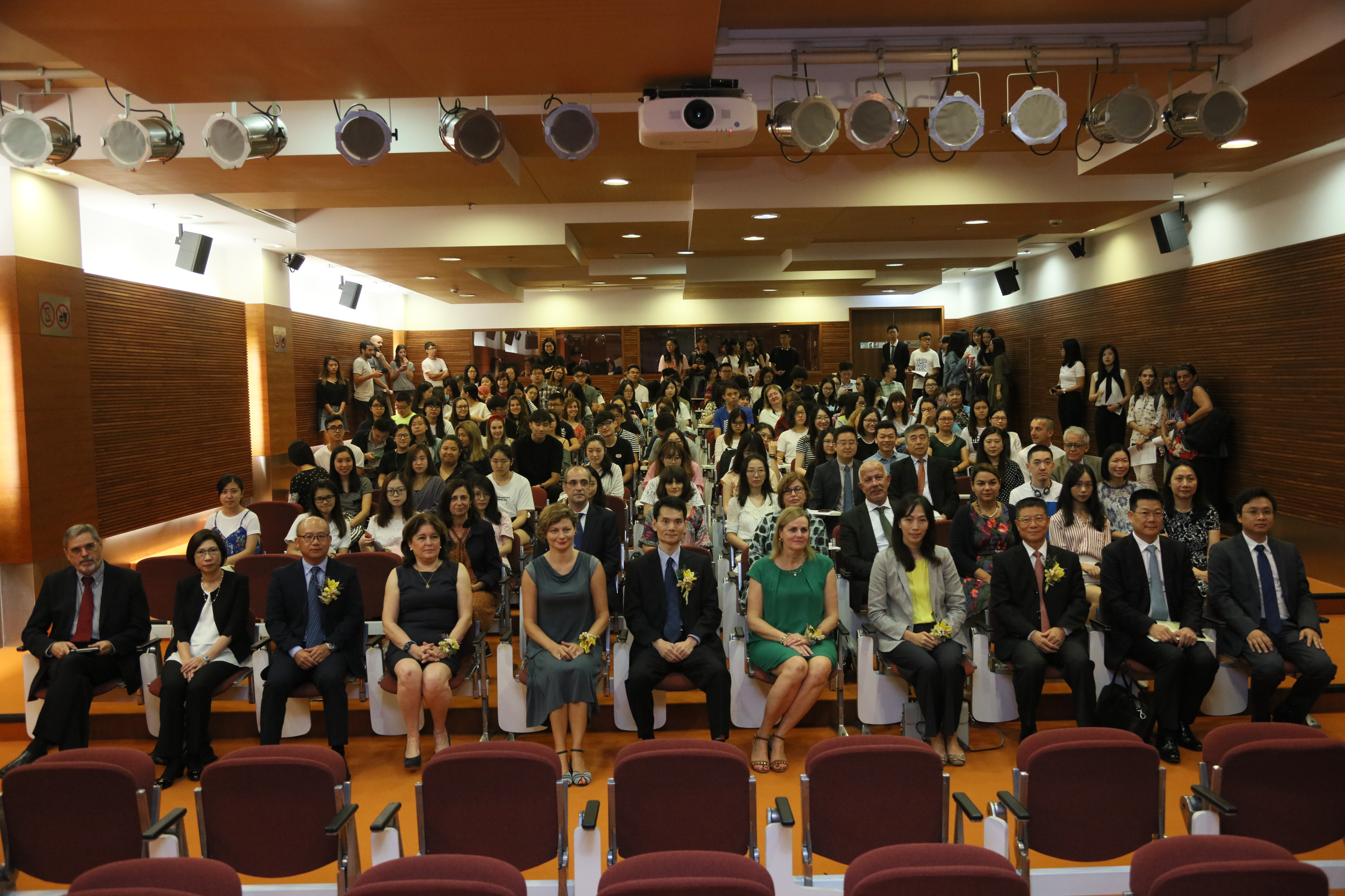 “口譯與筆譯:經驗﹑理實與展望”研討會於十月十日上午在理工學院匯智樓演講廳隆重舉行開幕儀式,由外交部駐澳特派員公署政策研究辦公室主任冉波參贊﹑歐盟駐香港及澳門辦事處代表Jolita Pons﹑歐盟委員會口譯總司司長Florika Fink-Hooijer和筆譯總司代表Maria Cristina De Preter﹑理工院長李向玉﹑行政公職局副局長羅健儀﹑高等教育輔助辦公室副主任曾冠雄主禮,來自歐盟委員會翻譯部門﹑中國翻譯協會的專家﹑學者,以及理工師生約二百人出席;研討會並得到高等教育輔助辦公室贊助。