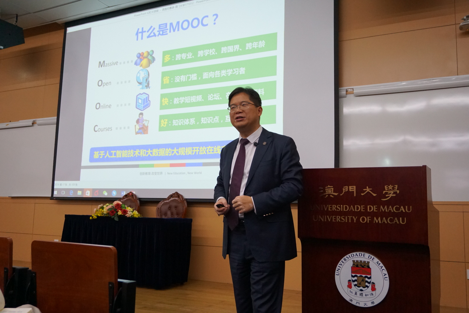 澳門大學今(12)日舉行“MOOC在線教育講座”,由教育部在線教育研究中心副主任、清華大學副秘書長、在線教育辦公室主任、北京慕華信息科技有限公司董事長聶風華以“奔跑吧,慕課!”為題,暢談在線教育的發展與前景。同場澳大與北京慕華信息科技有限公司簽署了合作協議,加強雙方於在線教學平台的合作。