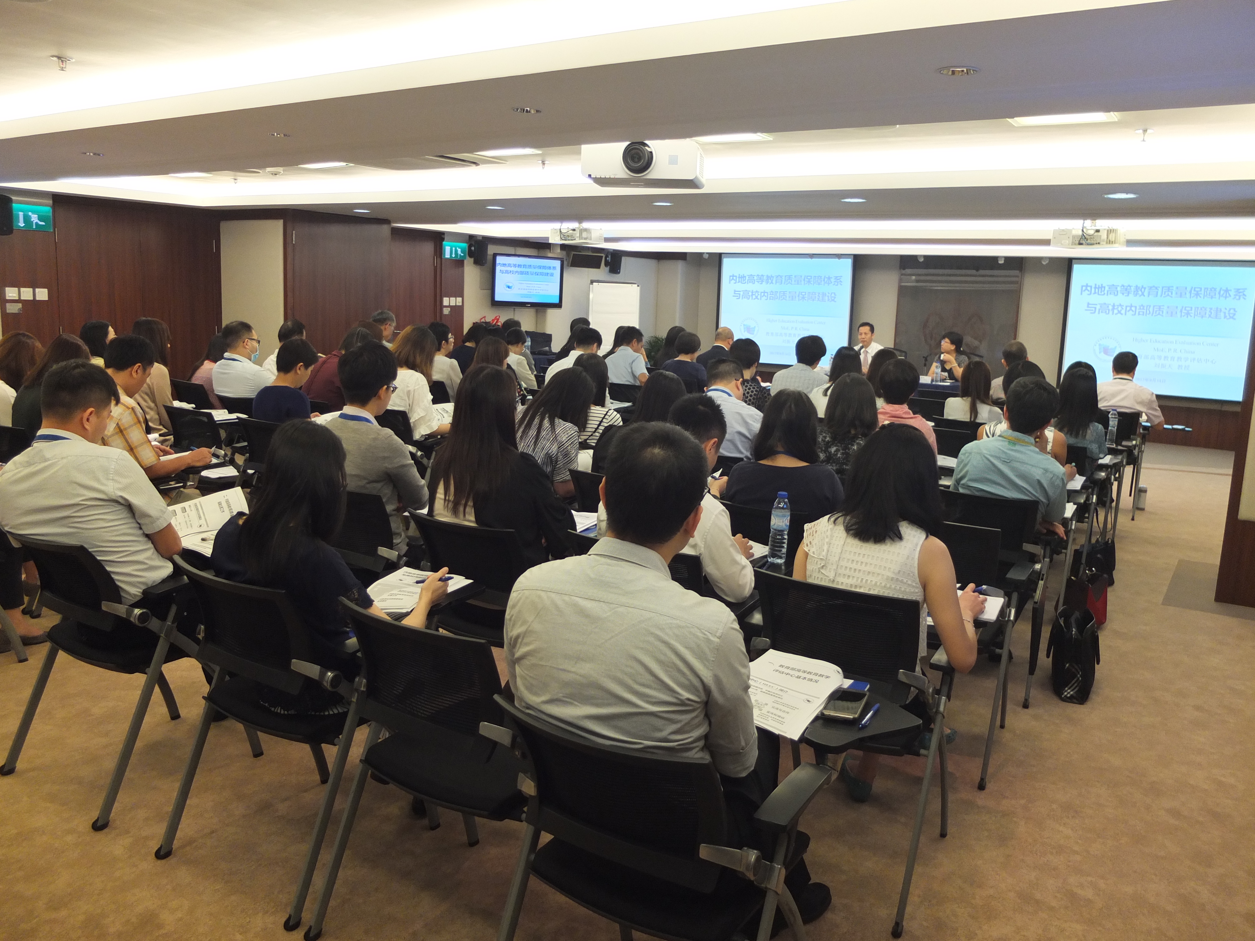 教育部高等教育教學評估中心院校教學評估處處長劉振天、專業評估處處長盛敏擔任主講嘉賓,介紹評估中心的運作和職能,以及內地高等教育質量保障機制。劉振天表示,評估中心於2004年成立,主要負責高校本科評估和專業認證評估的工作、開展高等教育研究及質量保障理論、政策和法規研究與諮詢,以及與國外質量保障機構及有關國際組織開展交流與合作。他提到,在高等教育質量保障機制方面,內地採用院校評估、自我評估、專業認證及評估、國際評估、狀態數據常態監測組成的“五位一體”評估制度。