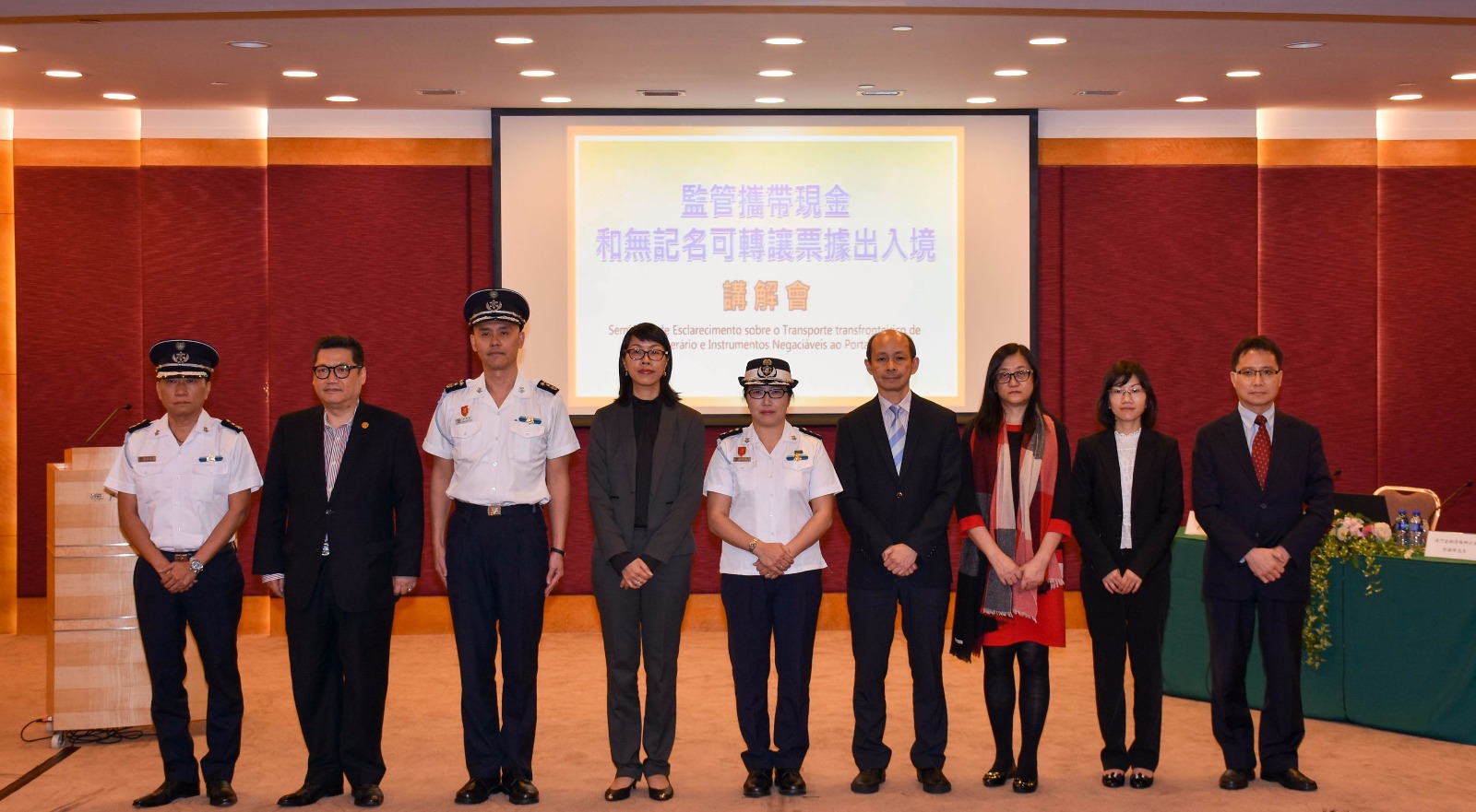 會上,澳門海關周見靄代任助理關長致辭時表示,一直以來,預防和打擊清洗黑錢及資助恐怖主義活動是國際社會相當重視的議題,澳門作為國際旅遊城市,亦是中國與葡語國家商貿合作服務平台,在履行國際義務方面,責無旁貸。為此,立法會於本年6月頒佈第6/2017號法律。其後,金融情報辦公室代表鄧穎峰介紹有關法律的立法原意,並強調法律的實施不會限制、阻礙或禁止合法的資金進出澳門;為預防和打擊清洗黑錢及資助恐怖主義活動,維護澳門特區經濟體系的安全穩定,金融情報辦公室將全力配合海關,嚴格監察和執行相關法律。海關行動管理廳鄭健聰廳長亦在會上就法律的實施、執行,以及出入境人士之申報程序作出詳細講解。根據法律規定,入境人士攜帶總值為澳門幣十二萬元或以上的現金,或無記名可轉讓票據,例如旅行支票、支票、匯票、付款委託書、本票等,應主動向海關人員申報,並填寫申報書及選擇紅色通道通關;出境人士如被海關人員查問,亦應如實作出申報,否則可被科處澳門幣一千元至五十萬元的罰款。至於中途短暫停留澳門特區的過境旅客,則無須作出申報。
