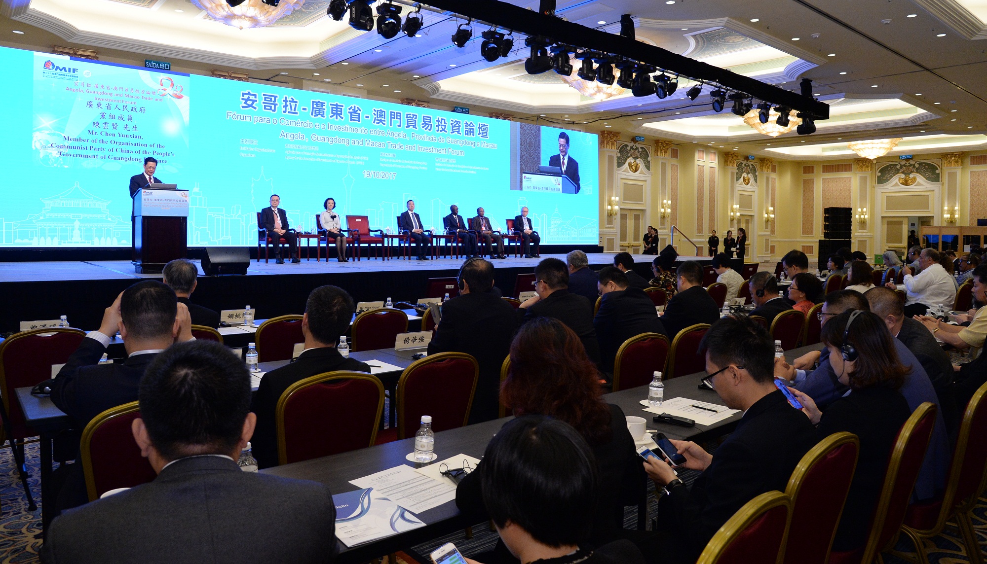 經濟財政司司長梁維特致辭時表示,安哥拉和廣東省一直是澳門兩個重要合作夥伴,在今屆MIF擔任夥伴國和夥伴省,兩地的市場機遇是本屆MIF重要亮點之一。安哥拉是中國在非洲的重要戰略夥伴,2016年中、安貿易額達156億美元,當地的中資企業超過百家。而廣東省長期支持澳門穩定發展,與澳門共同把握和參與國家發展戰略,不斷深化兩地在經貿、旅遊、文化等多個領域合作。他希望透過論壇,展示三方最新經貿環境、解構投資政策,共同探討經濟新形勢下如何通過各方面合作,共謀發展,進一步推進“世界旅遊休閒中心”和“中國與葡語國家商貿合作服務平台”建設,為本地居民和企業,尤其中小企、專業人士和青年提供更廣闊的發展空間。