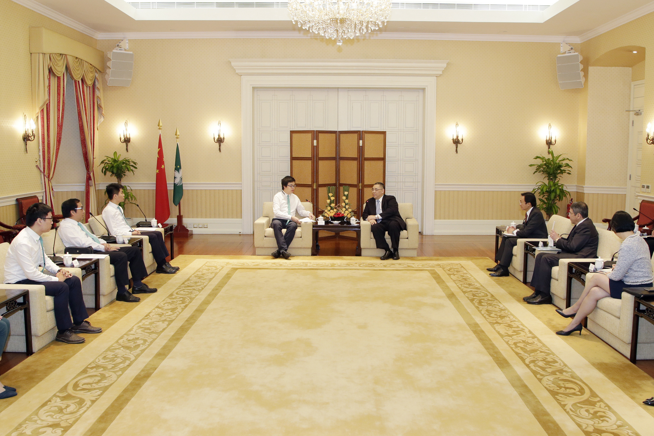 參加會見的還有社會文化司司長譚俊榮、運輸工務司司長羅立文、行政長官辦公室主任柯嵐、新澳門學社理事李國強和甘雪玲等。