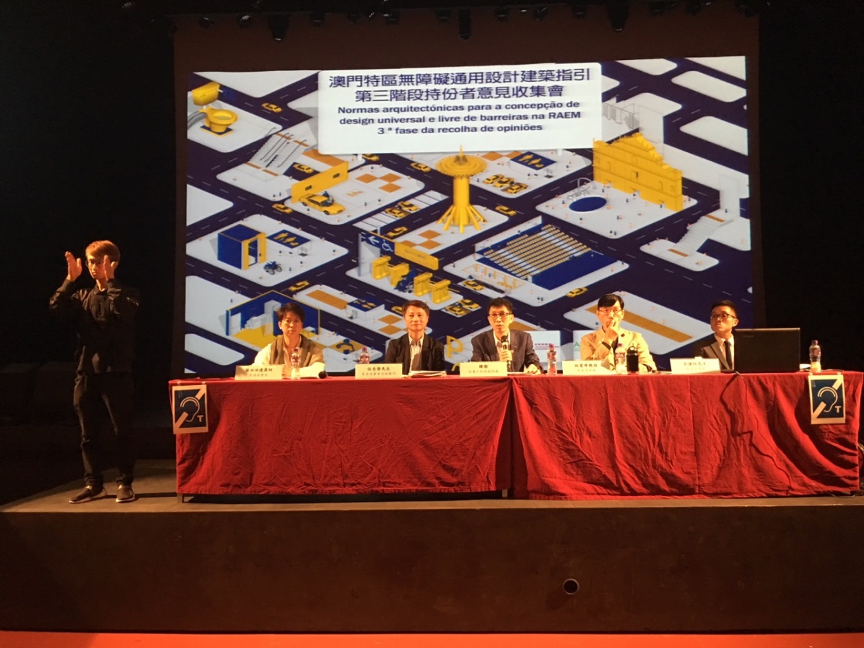 《澳門特區無障礙通用設計建築指引》第三階段意見收集會早前於澳門明愛何麗婉華庇道演藝劇院舉辦。三場活動約有300人次出席,與會者踴躍發言,為無障礙通用設計提供不少寶貴的意見。