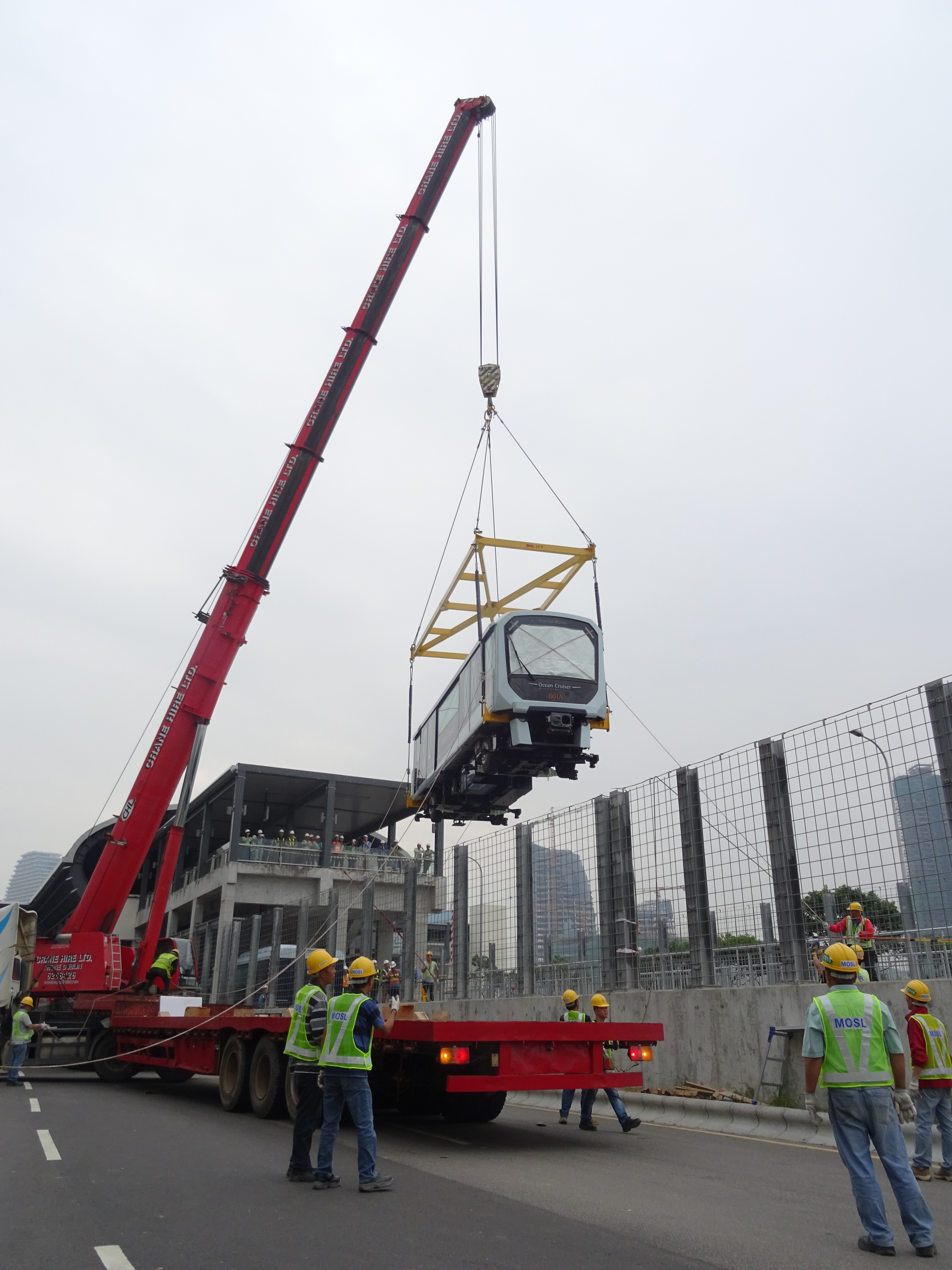 隨著輕軌氹仔線的系統設備安裝工作按序推進,施工團隊亦密鑼緊鼓為來澳的車廂作各項協調及準備。繼日前完成運送兩台專用的維修車輛,今(7)日,首兩節輕軌列車車廂亦經路環九澳深水碼頭運送至輕軌「海洋站」,及後將進行一系列檢測,包括檢驗一般規格及設備功能性的靜態測試,例如車門開關、車內照明、警報系統等。通過靜態測試後,稍後亦會陸續安排列車於軌道上進行動態測試,以確保列車及各項相關設備的性能達標。