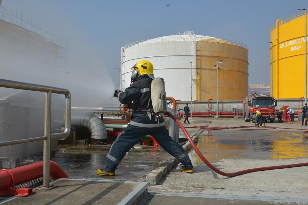 演習模擬九澳發電廠內碼頭有一個用作控制收集海水垃圾的電子控制板發生電線短路,引發火警。九澳發電廠立即啟動緊急應變措施,按照內部應急計劃相關人員疏散到逃生集合點,並致電消防局報案;演習期間,共疏散二百多名人員,其中有一名人員因吸入濃煙而感到不適送院。