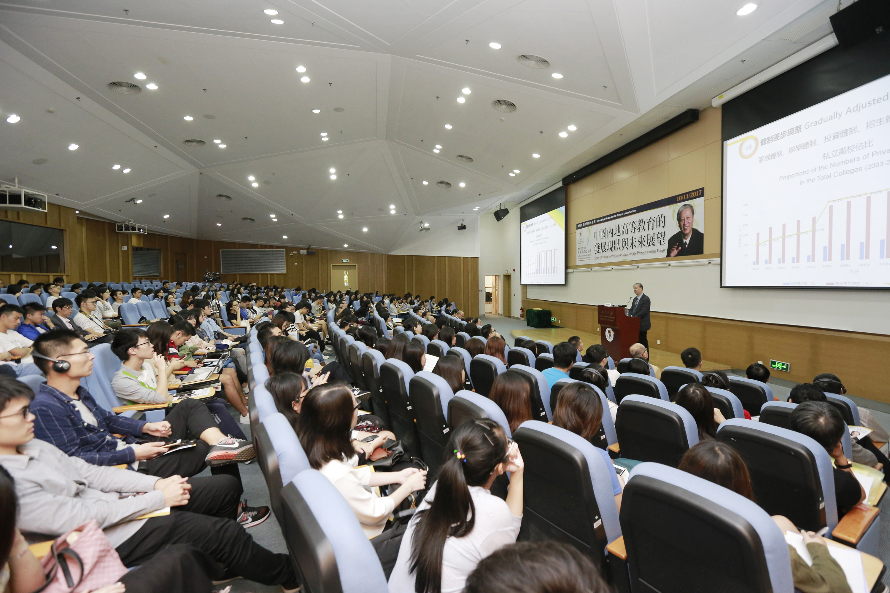 澳大人文學院院長靳洪剛致辭時表示,每一位家長都希望讓子女接受優質高等教育,希望他們日後有更佳的出路、具國際水平的競爭力。21世紀高教面臨眾多挑戰,如知識爆炸年代、大數據迅速發展、全球一體化趨勢等,相信鍾秉林對國內高教分析和真知灼見,將對大家有所啟思。