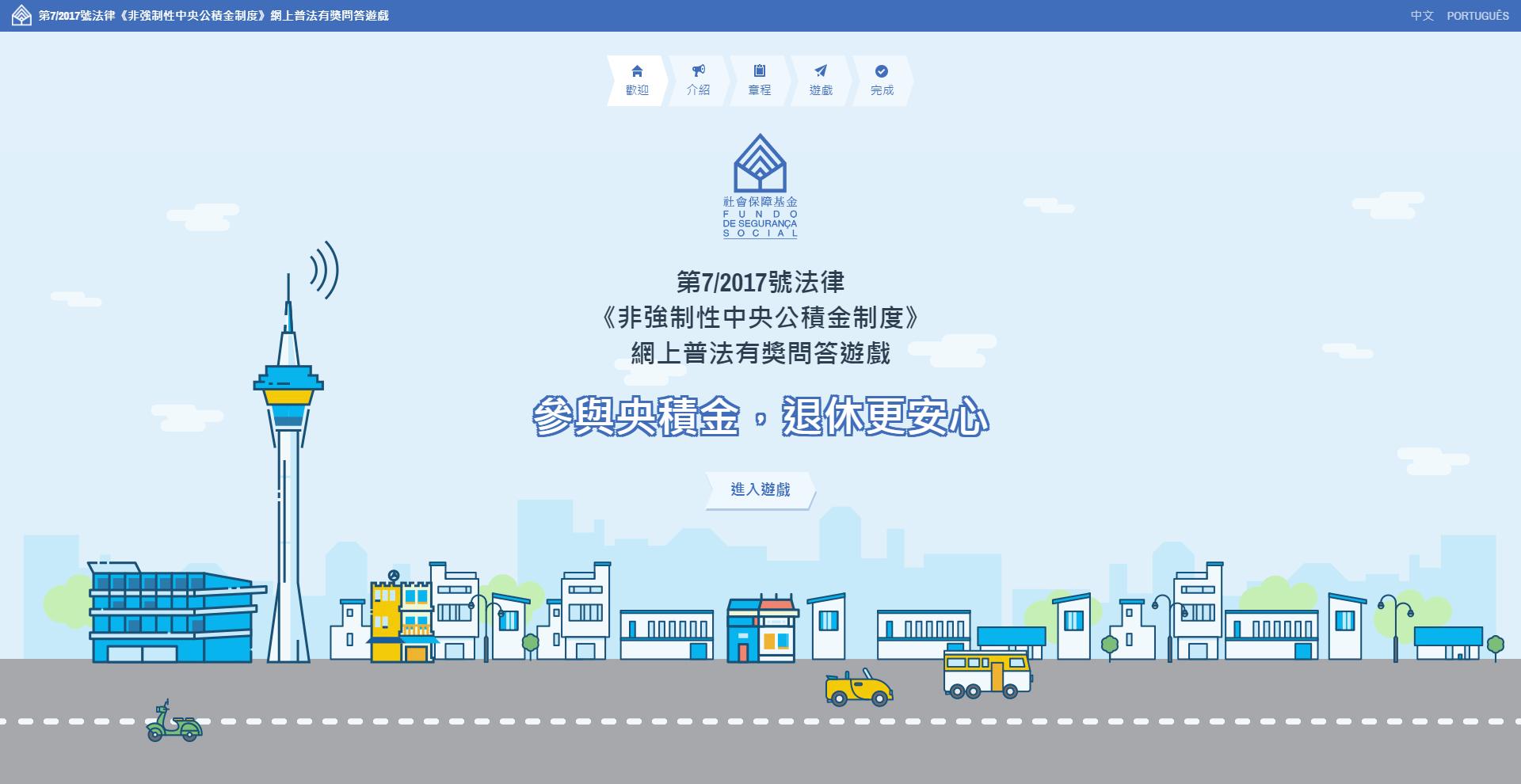 為推廣明年1月1日正式生效的第7/2017號法律《非強制性中央公積金制度》而舉辦的網上普法有獎問答遊戲至本月17日結束,社會保障基金歡迎年滿16歲的居民把握機會踴躍參與。