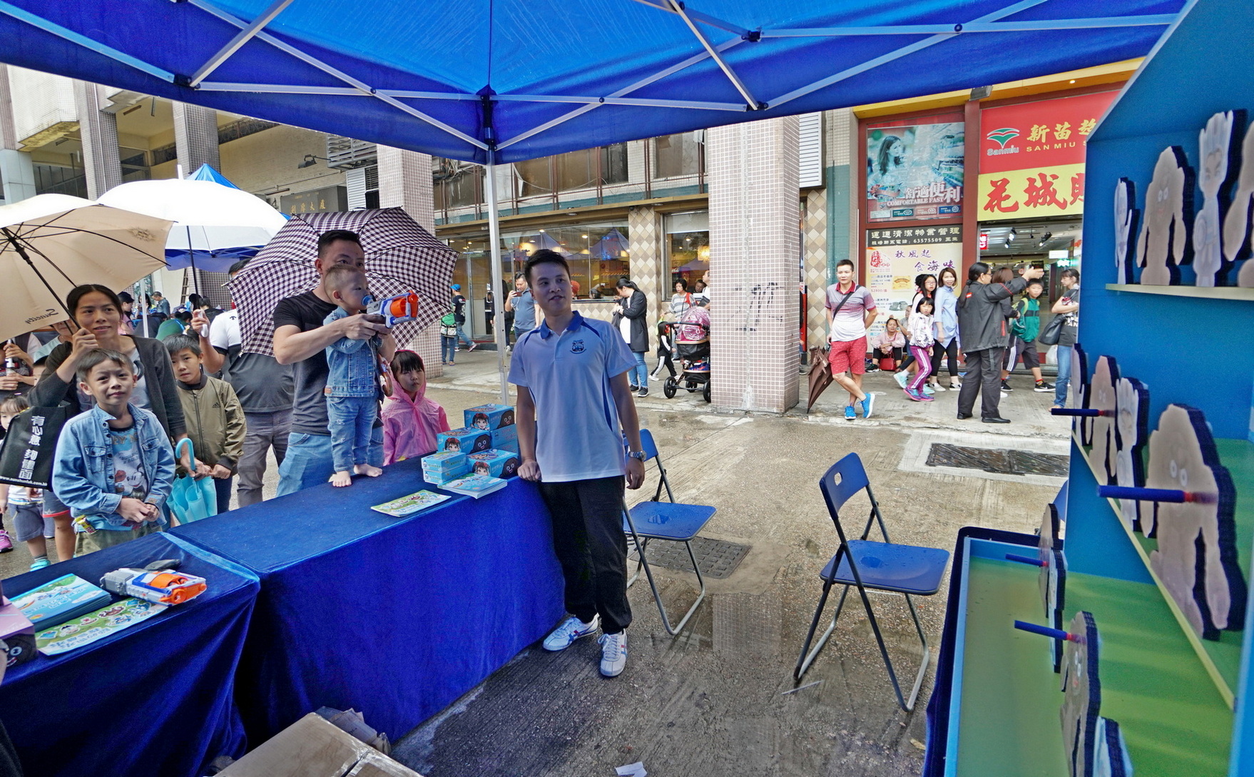 “海安全‧水優質”社區巡禮現場設有多個以航行安全、沙灘旗號及清潔、節約用水、認識鹹潮、維護管理樓宇自來水系統等為主題的攤位遊戲和工作坊,還有“海安全‧水優質”真人版遊戲棋以及指南魚工作坊,有趣互動之餘,大人和小朋友亦能從玩樂中學習到海事及節水知識。期間更上演了精彩的節水話劇,深受小朋友喜愛的“威水超人”和“水汪汪姐姐”現身和大家玩節水遊戲和派禮物,吸引了眾多小朋友踴躍參與。
