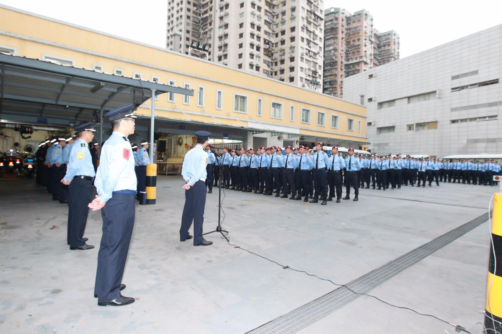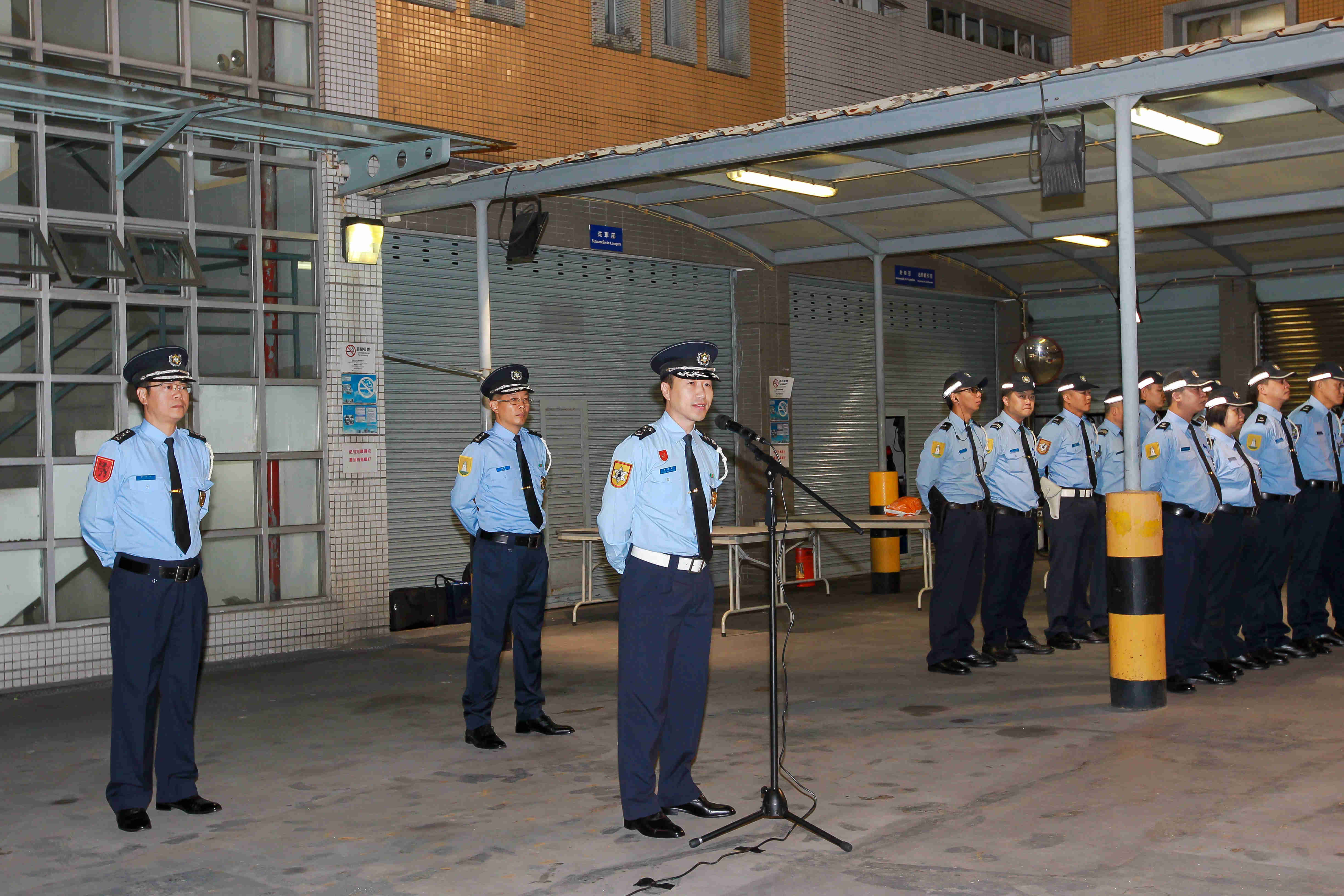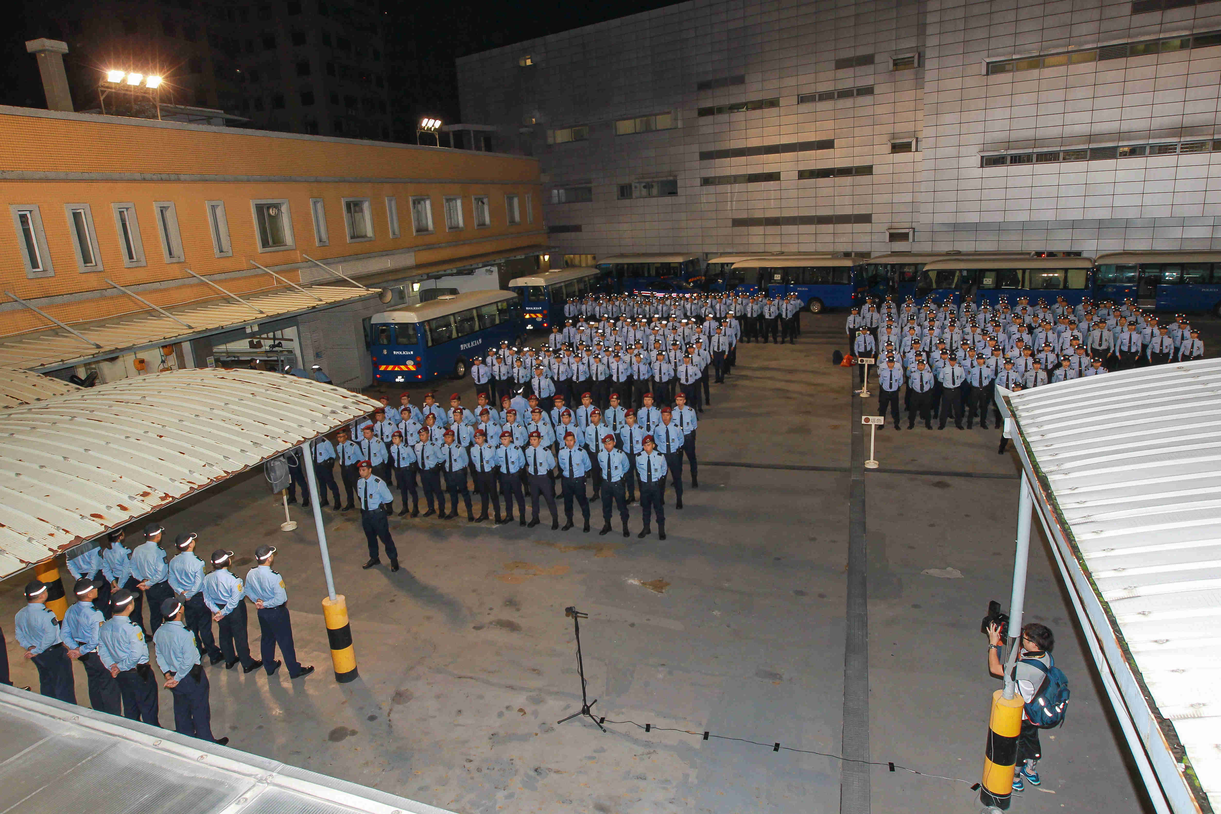 所有參與大賽車保安工作的警務人員在日前及在今早練習賽開始前,進行列隊及聽取工作注意事項的講解,確保大賽車活動順利進行。