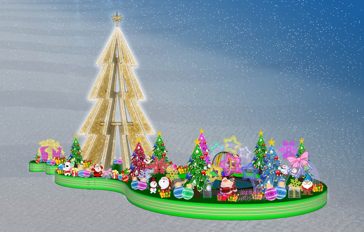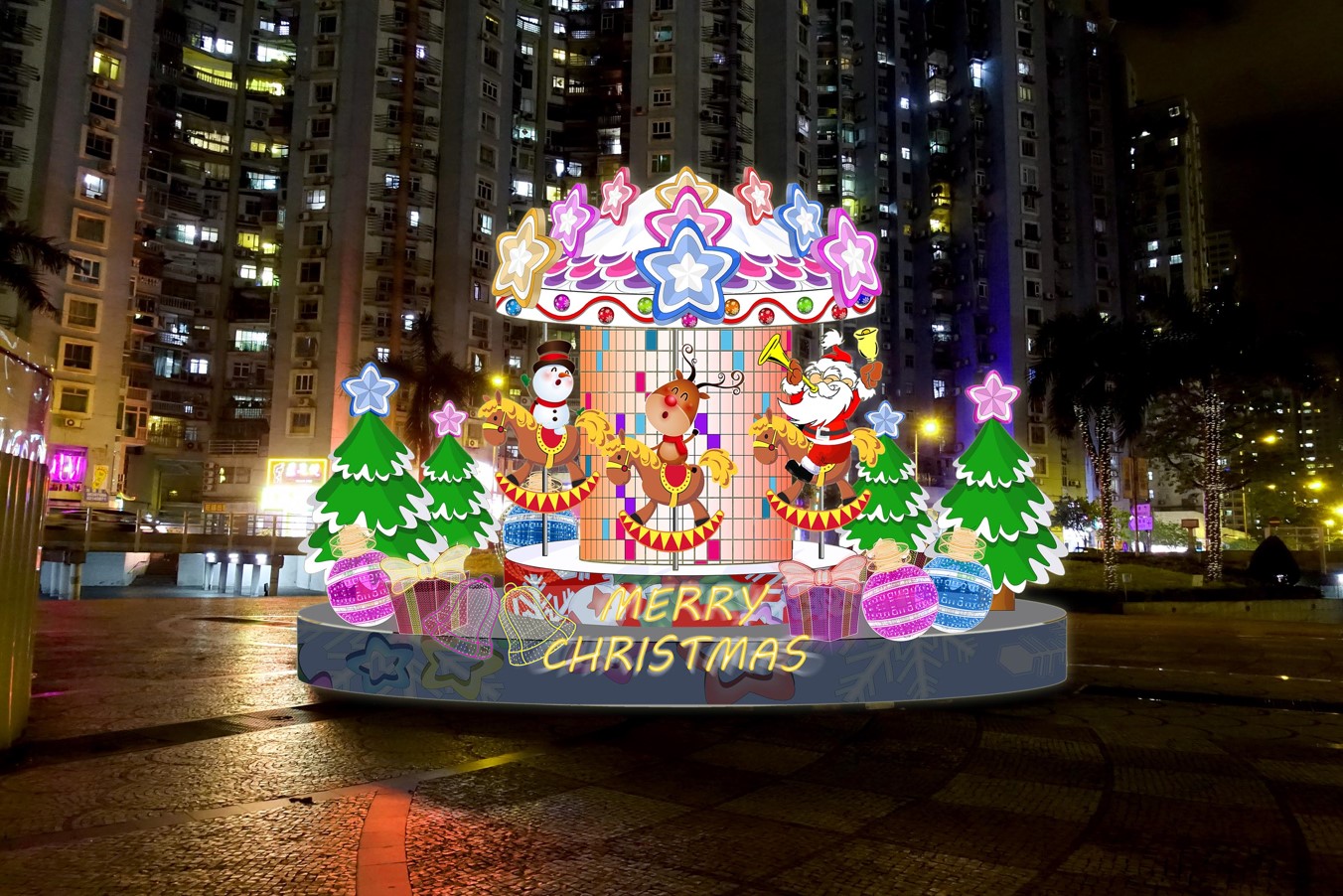 民署將於各主要街道、廣場、公園、休憩區及圓形地等地點佈置燈飾,包括在燈柱間安裝LED碎燈及雪花燈牌,於各主要場地安裝以聖誕節元素為主的大型燈飾,如聖誕鹿車、LED彩色大圓球等,更於議事亭前地、關閘廣場及塔石廣場等設置大型聖誕樹,以及於大堂前地、友誼廣場、塔石廣場及氹仔嘉模前地設置聖誕馬槽,讓全澳各區都洋溢著濃厚的節日氣氛。