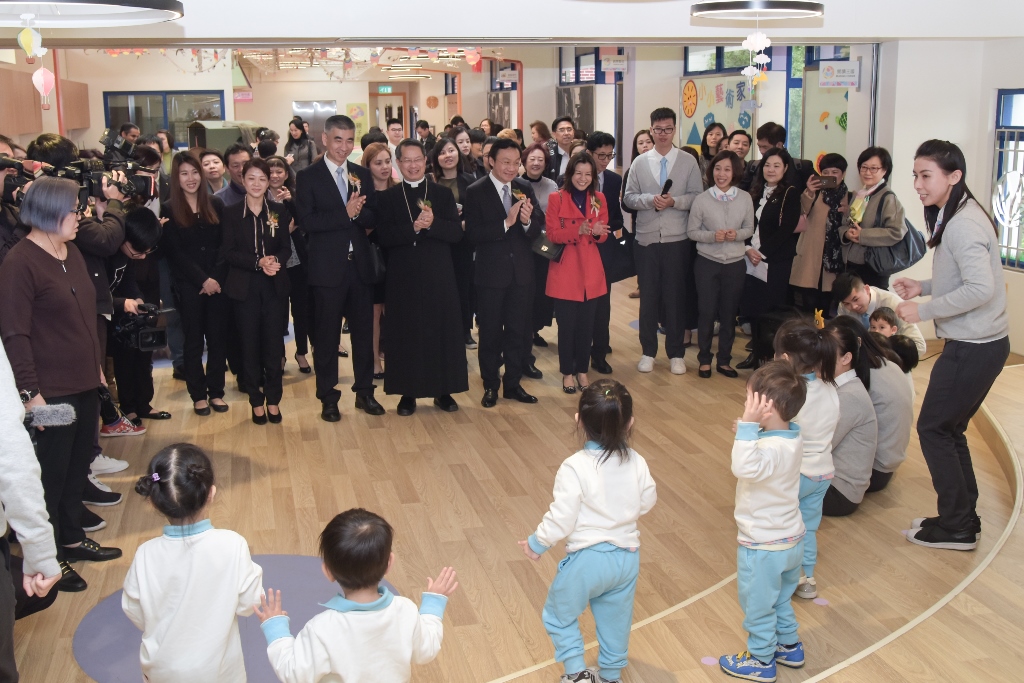 由社會工作局委託澳門教區管理和營運的澳門教區梁文燕托兒所及親子館今(27)日舉行開幕典禮,社會文化司譚俊榮司長及一眾嘉賓主持啟動儀式,期間參觀托兒所及親子館及聽取相關簡報。