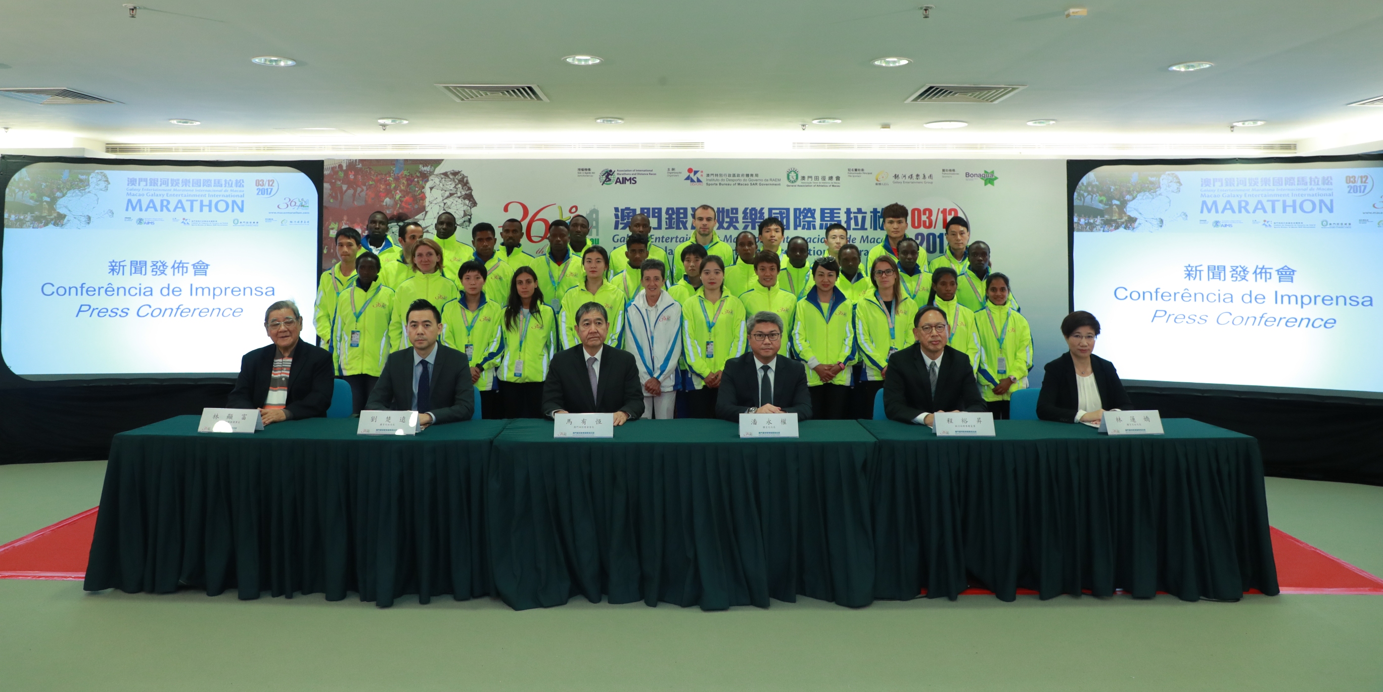 由體育局及澳門田徑總會主辦,銀河娛樂集團冠名贊助的「2017澳門銀河娛樂國際馬拉松」將於12月3日(星期日)舉行,組委會今天(1日)舉行賽前新聞發佈會簡介賽事情況,並安排一眾特邀長跑好手與傳媒會面。