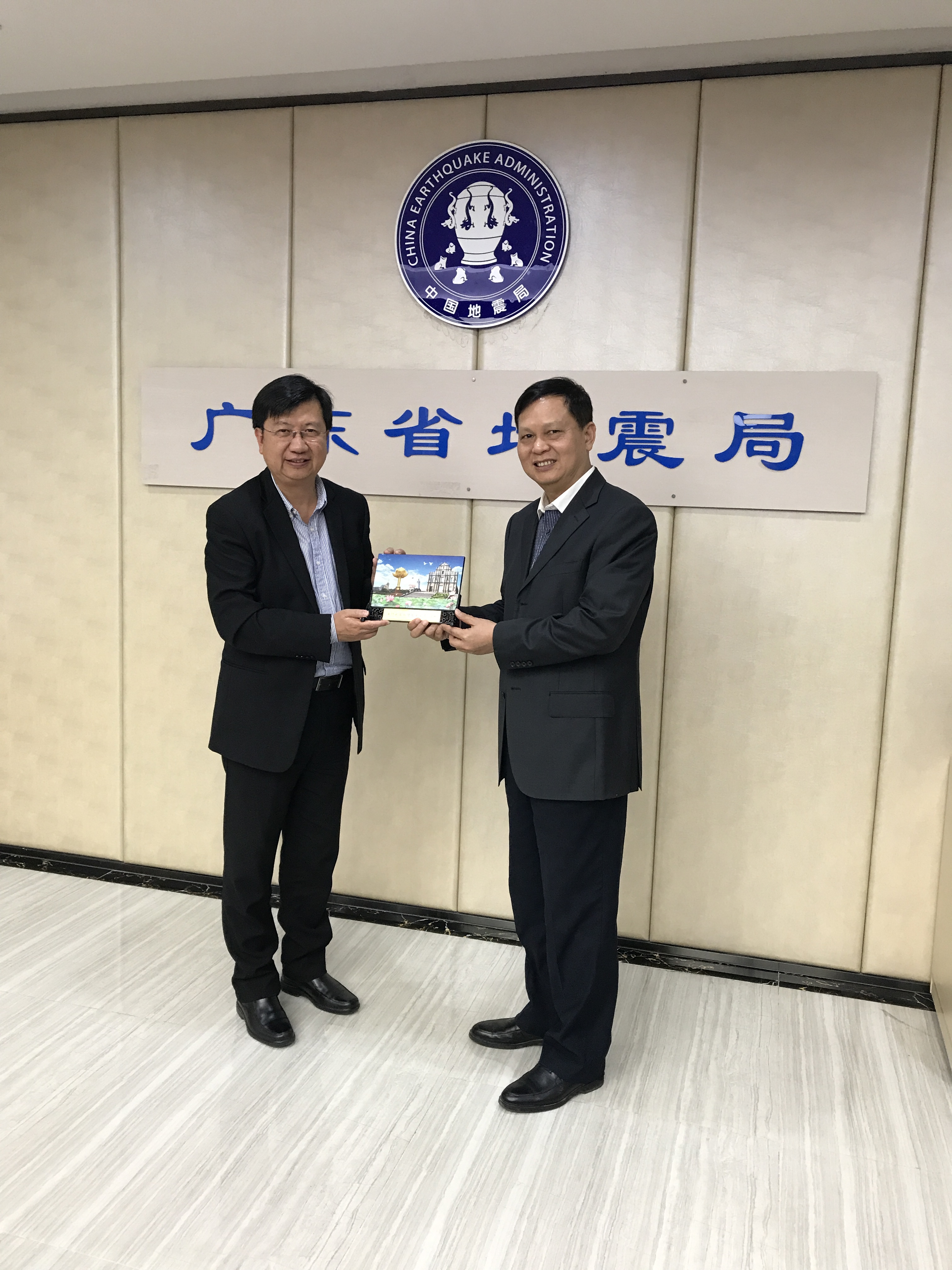 為加快推動粵澳兩地氣象合作方案的有效執行,地球物理暨氣象局譚偉文局長於12月1日親赴廣州市拜會廣東省氣象局;亦拜會位於廣州市的廣東省地震局,以加強粵澳兩地地震部門的聯繫和交流,提升本澳應對颱風、風暴潮和地震等自然災害的能力。