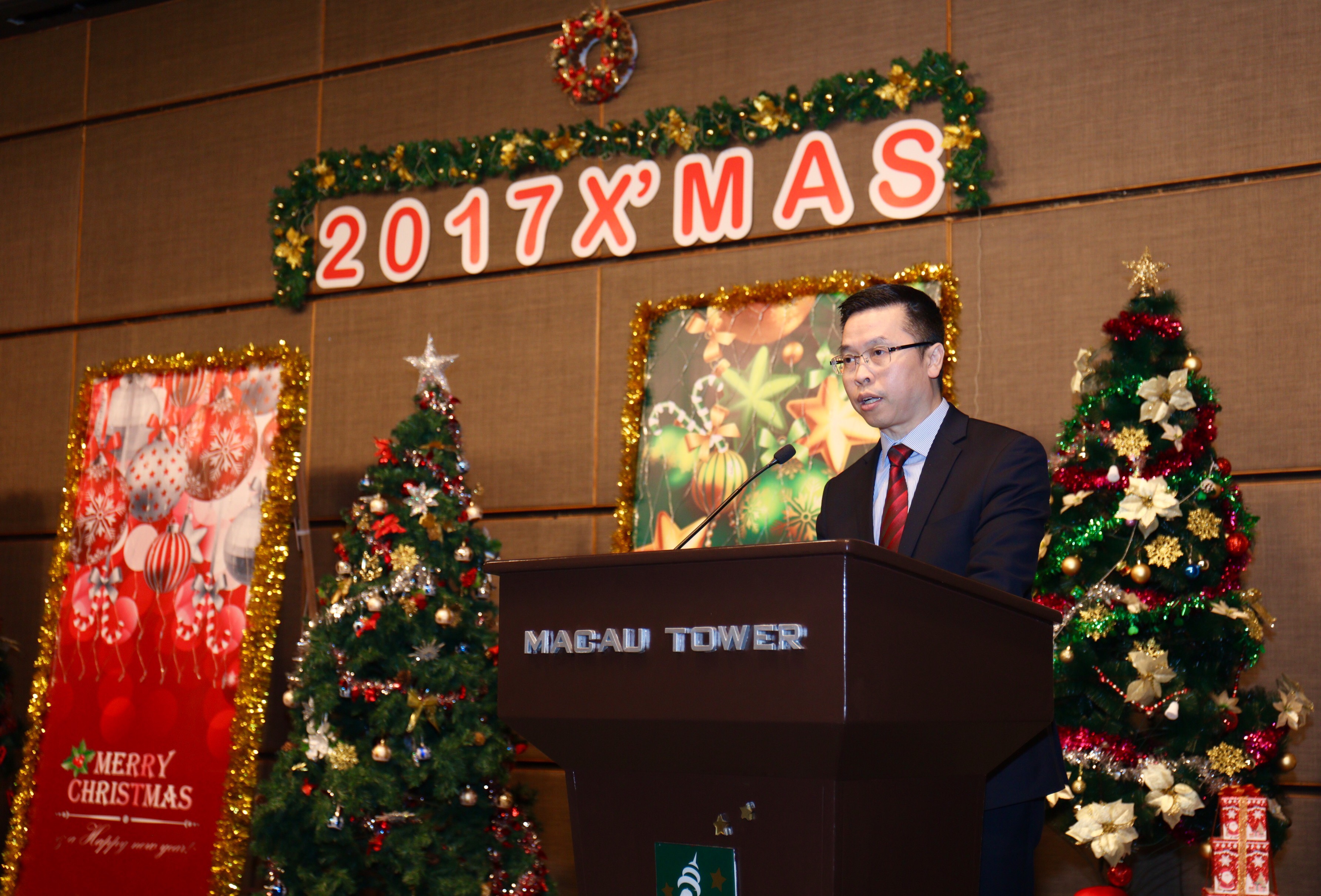 消防局於本月十三日舉行2017年消防局聖誕聯歡晚會,並邀請保安司司長黃少澤、司長辦公室主任張玉英,鏡湖護理學院及紅十字會代表出任嘉賓,藉此向消防人員及其家屬送上真摯的祝福,並一同慶祝聖誕佳節。