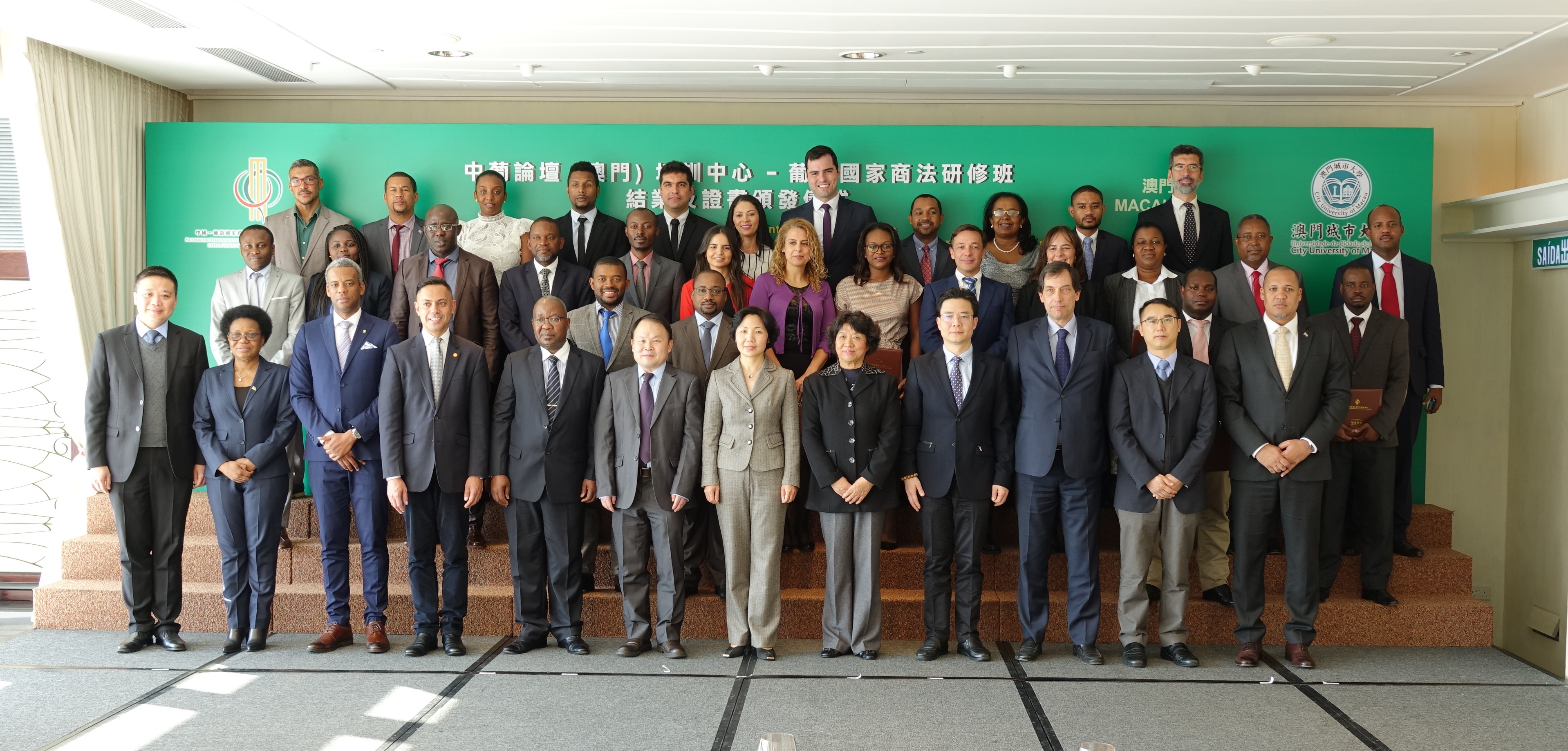 由中葡論壇(澳門)培訓中心主辦、澳門城市大學承辦的“葡語國家商法研修班”於12月18日假澳門美高梅酒店舉行結業典禮暨證書頒發儀式。中葡論壇(澳門)常設秘書處徐迎真秘書長、中央人民政府駐澳門特別行政區聯絡辦公室經濟部王家寶副部長級助理、莫桑比克駐澳總領事館領事事務公使銜參贊法蘭西斯古‧多明古斯‧曼尼薩先生、澳門城市大學孔繁清副校長以及論壇各葡語國家派駐代表等出席典禮。徐迎真秘書長、孔繁清副校長和研修班輪值班長若阿金·莫瑞斯先生分別致辭。
