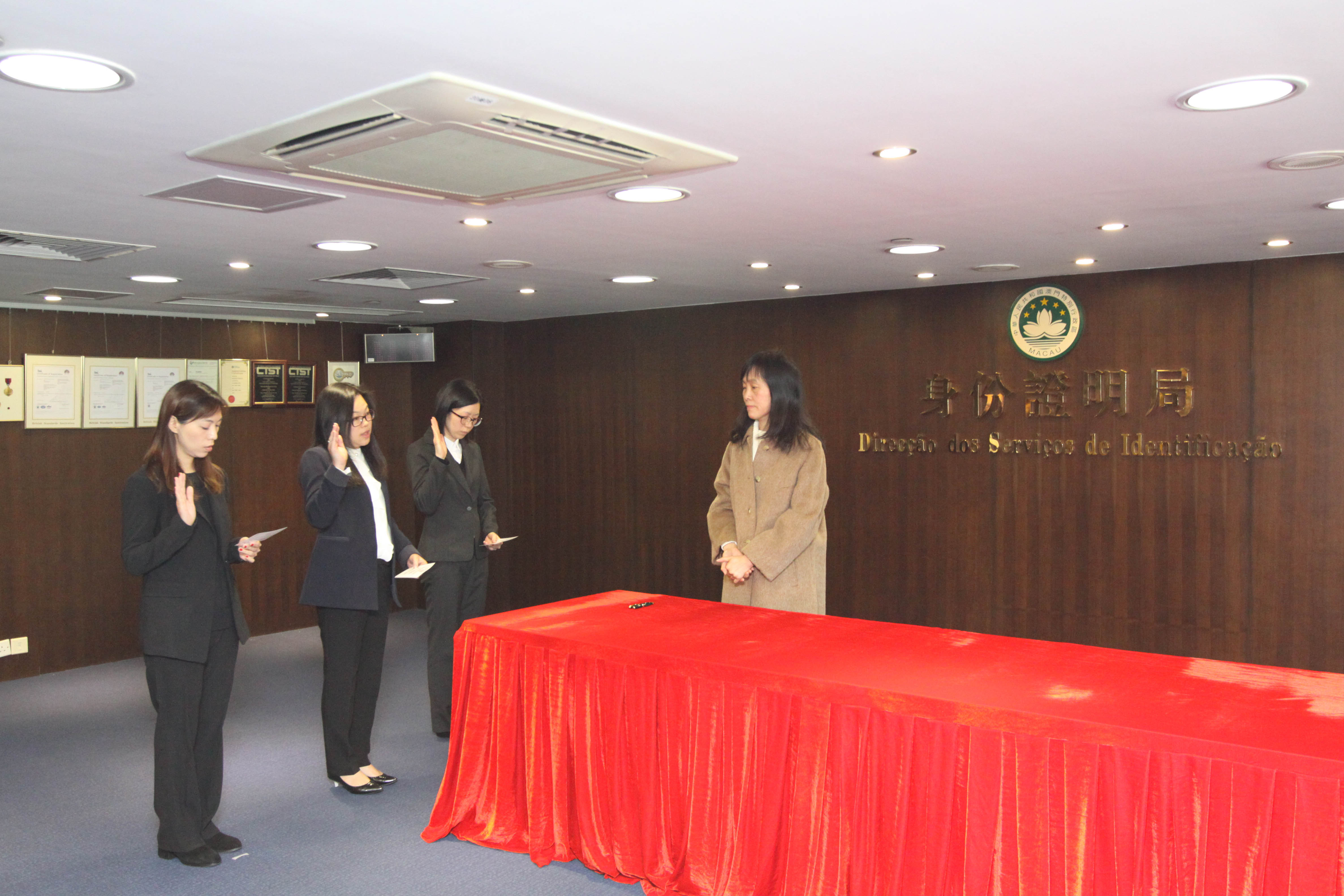 身份證明局於2017年12月21日舉行主管就職儀式,在歐陽瑜局長監誓及各主管人員見證下,身份證處處長尹潔琳、法律事務及公共關係處處長陳嘉宜及服務管理處處長黃淑卿宣誓就任。三位主管人員在各自不同的專業領域均有豐富的知識及工作經驗,具備專業能力及才幹擔任相關職務。