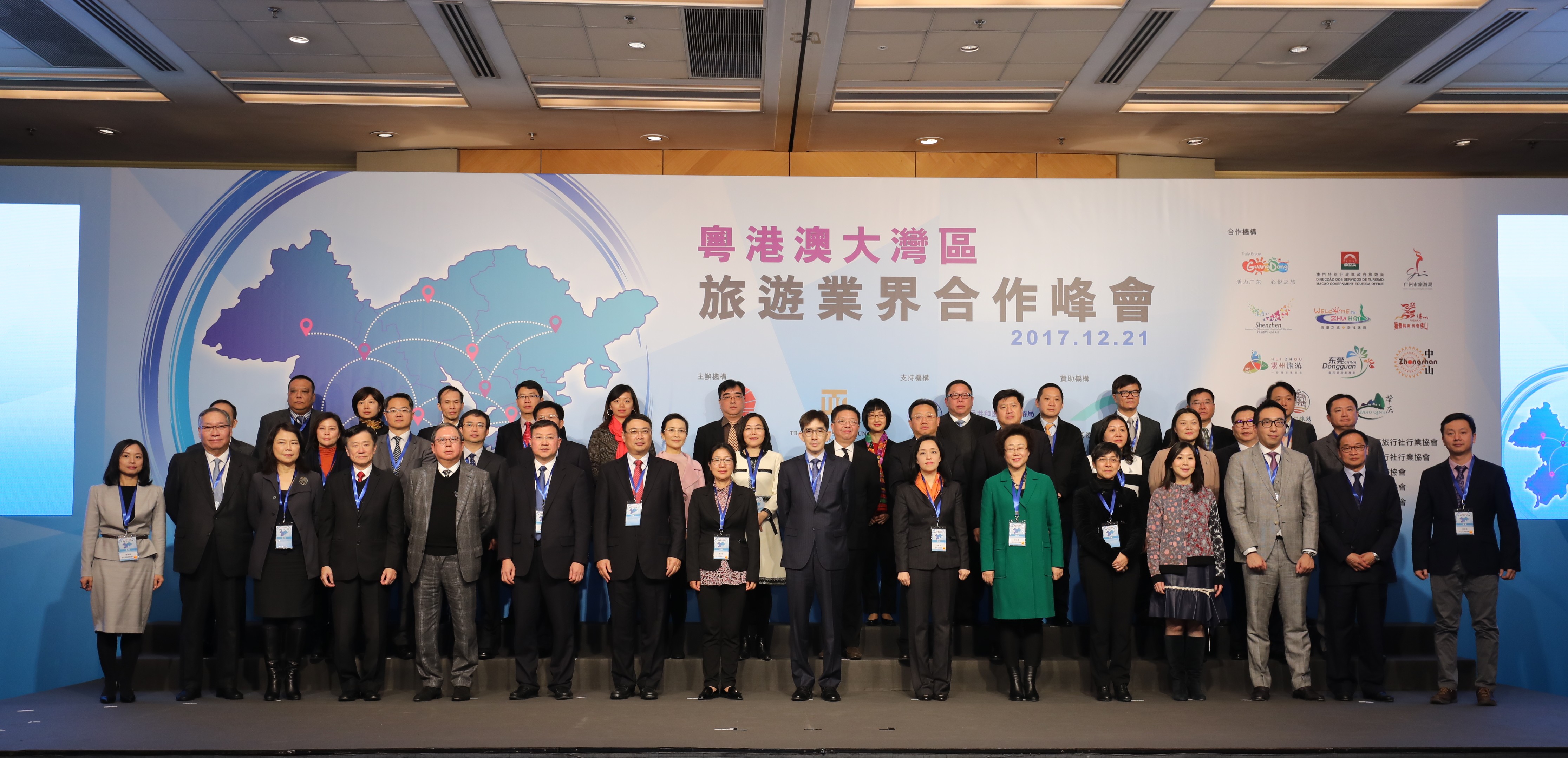 香港特別行政區政府商務及經濟發展局局長邱騰華、香港特別行政區政府商務及經濟發展局常任秘書長容偉雄、亞洲旅遊交流中心副主任崔素香、廣東省旅遊局局長曾穎如、廣州市人民政府副市長王東、深圳市人民政府副市長吳以環、珠海市市委常委郭才武、澳門特區政府旅遊局局長文綺華、香港旅遊發展局主席林建岳及香港旅遊業議會主席黃進達出席了《粵港澳大灣區旅遊業界合作協議書》簽訂儀式。