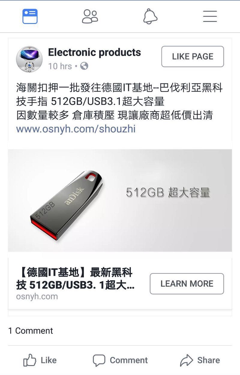 社交網站facebook上先後有名為“Electronic storm”及“Electronic products”的註冊用戶發佈貼文,聲稱一批無法正常通關的USB記憶體被澳門海關扣押,經協商後以超低價出售。澳門海關澄清並無此事,由於貼文利用澳門海關新聞圖片向外發佈虛假訊息,事件已交由相關部門跟進。